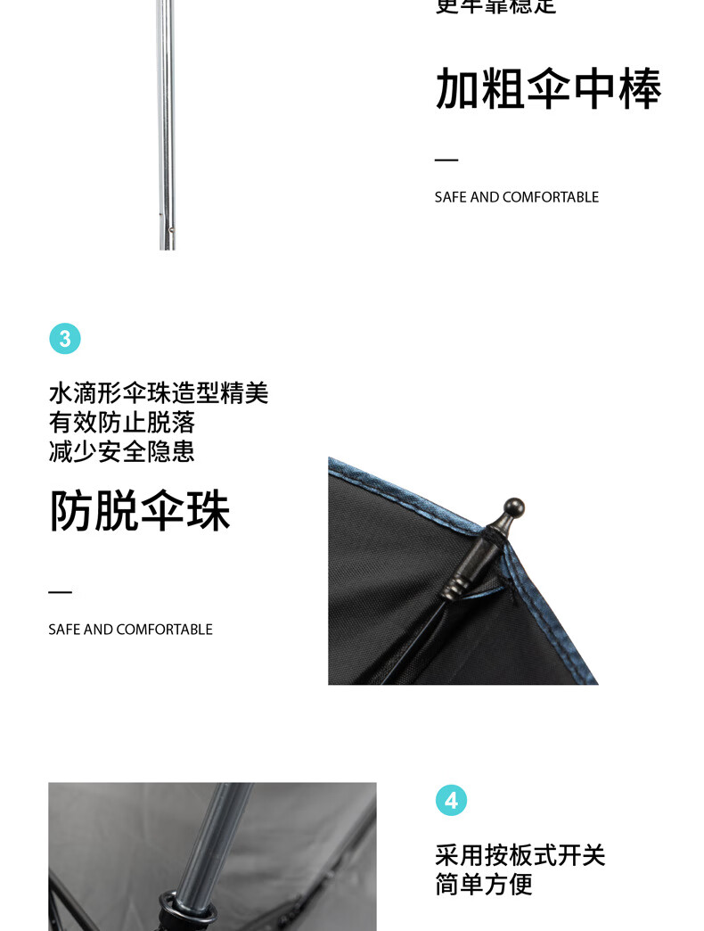 多色可选;钢制骨架, 不易折断,抗风耐用;优质钢材,让伞棒更牢靠稳定