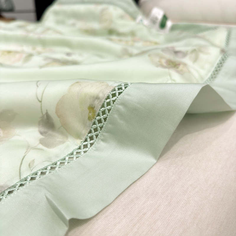 奢华如丝般的舒适触感。;安可莱抑菌纤维洁净生活空间的品质。;采用宽边镂空花边工艺 。