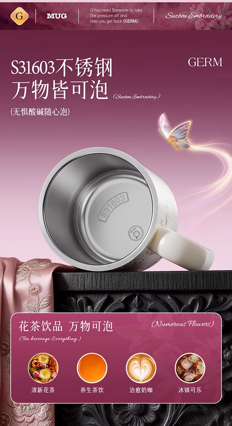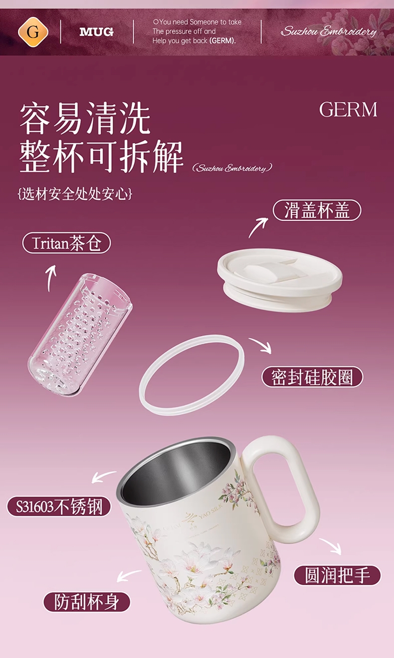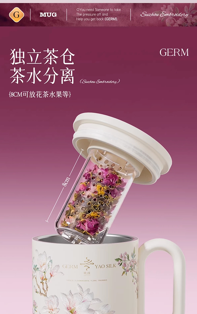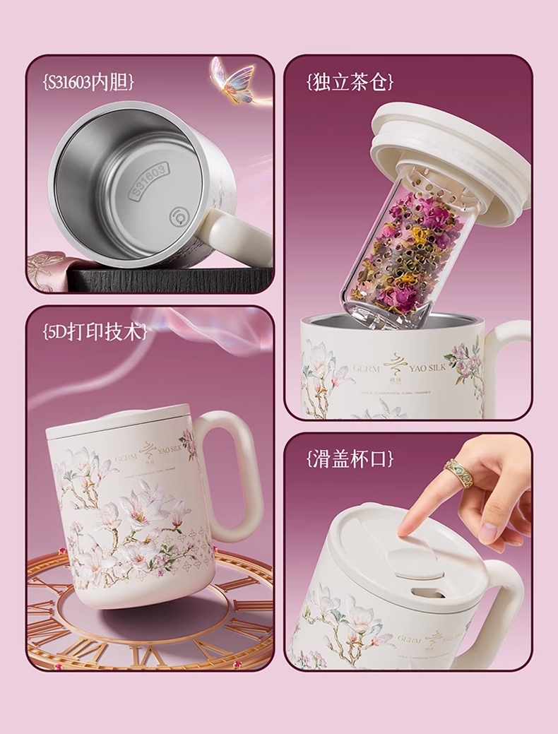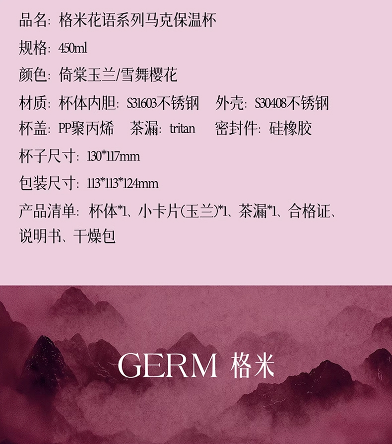 配置清单:马克保温杯*1、小卡片(玉兰)*1、茶漏*1、合格证、说明书、干燥包