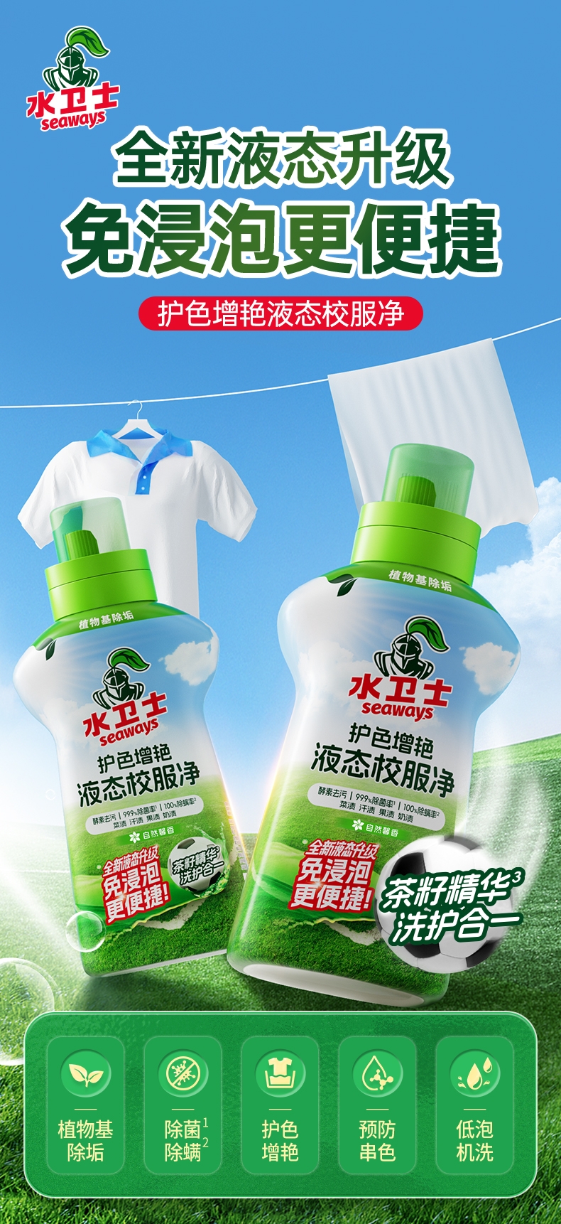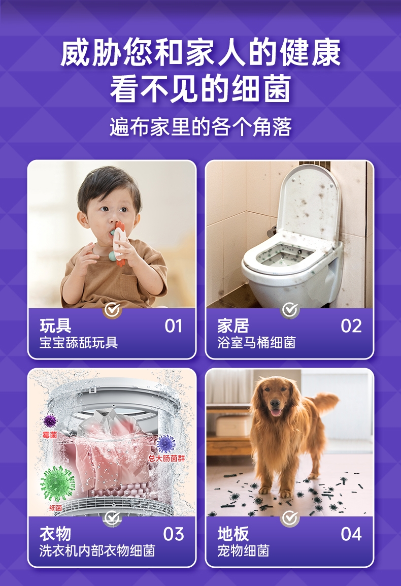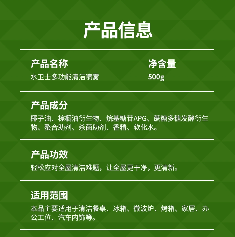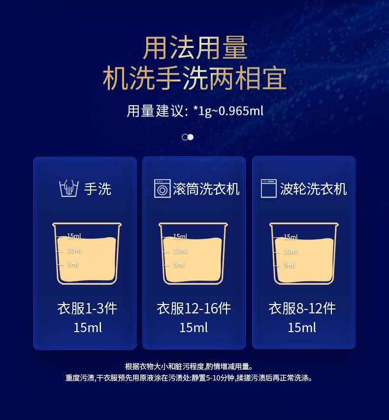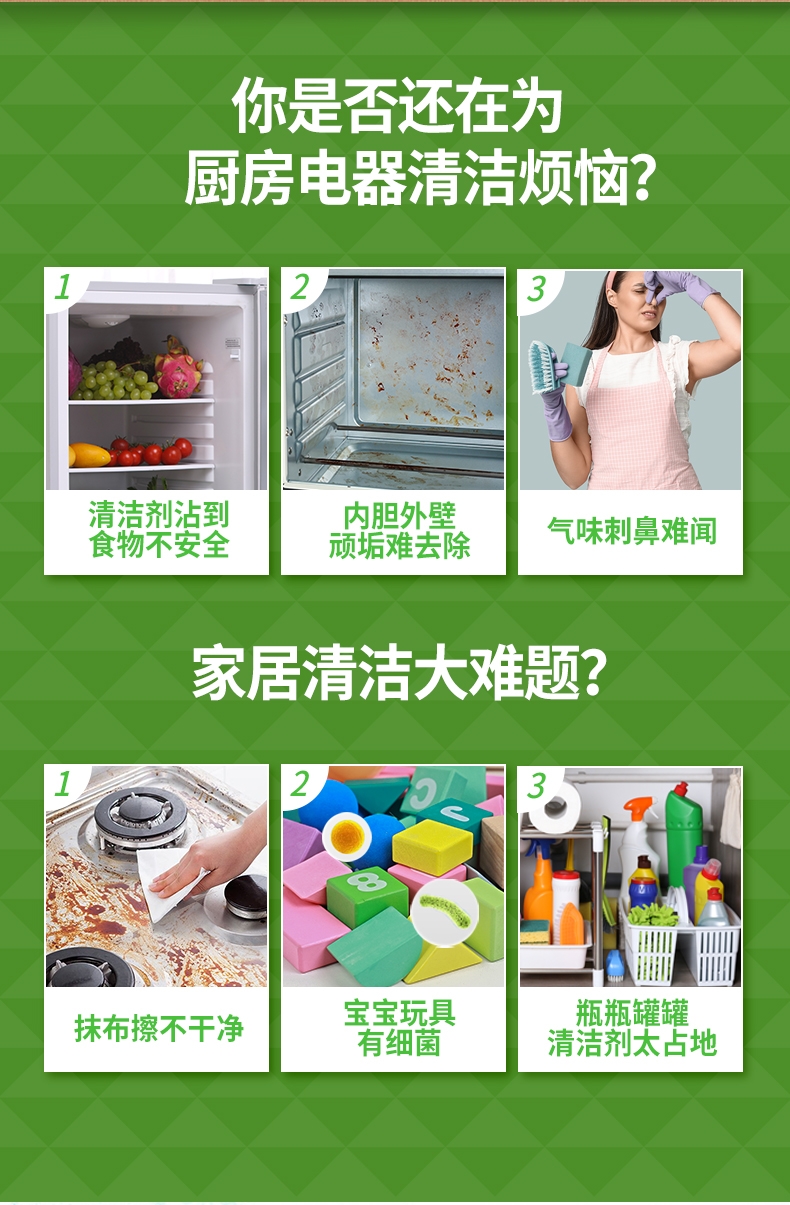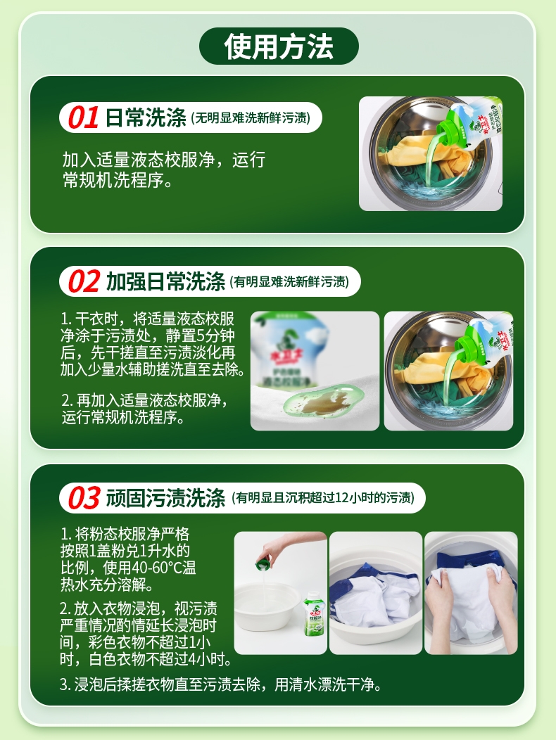 100倍兑水,天然植萃高效除菌,除菌率99.9%;浓缩洗衣精华液:浓缩洁净力,高定香氛,持久留香7天;厨房重油污:1分钟强劲快速溶解