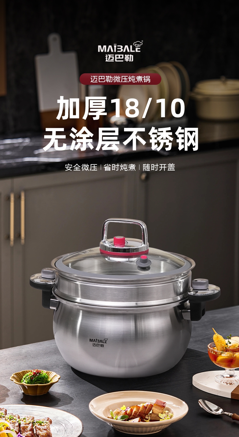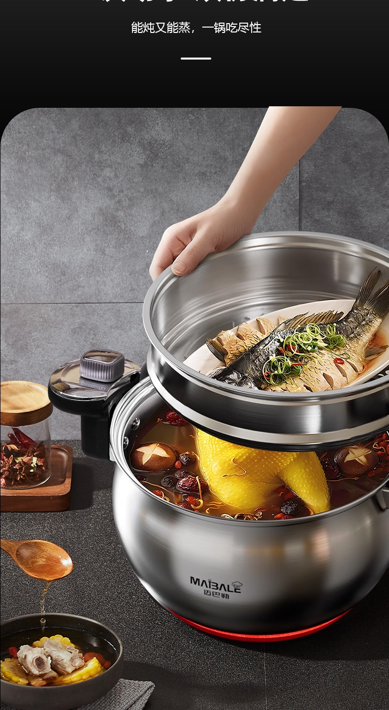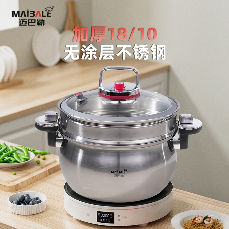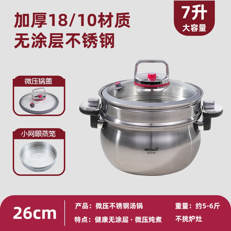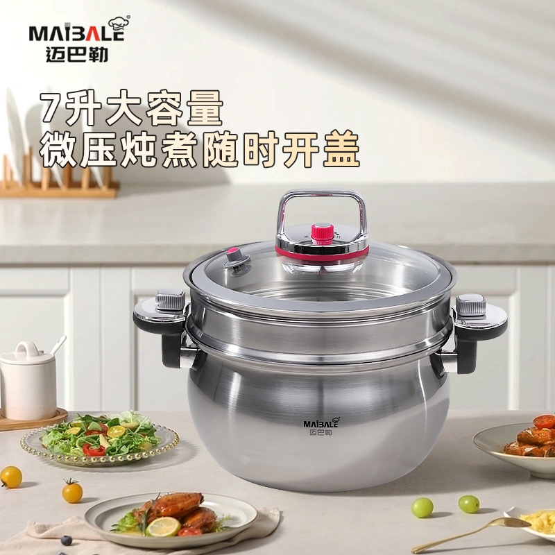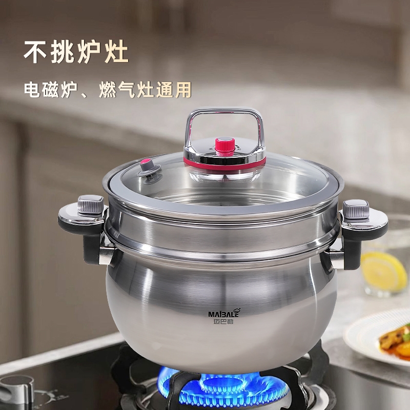 迈巴勒 不锈钢微压锅家用蒸煮汤多用途锅M-3003