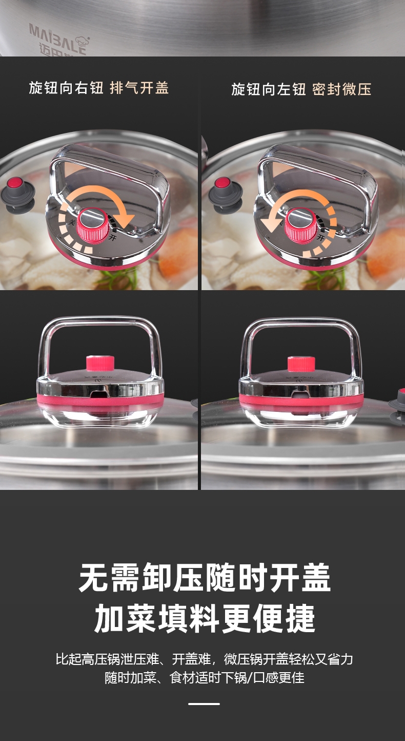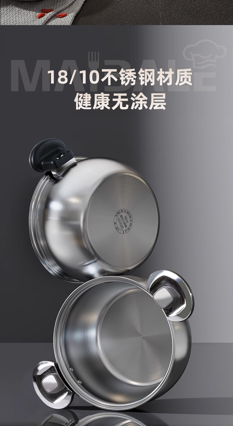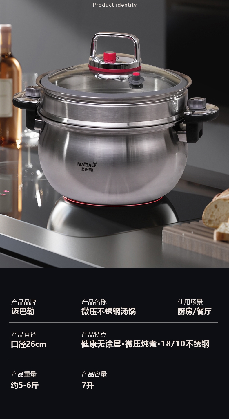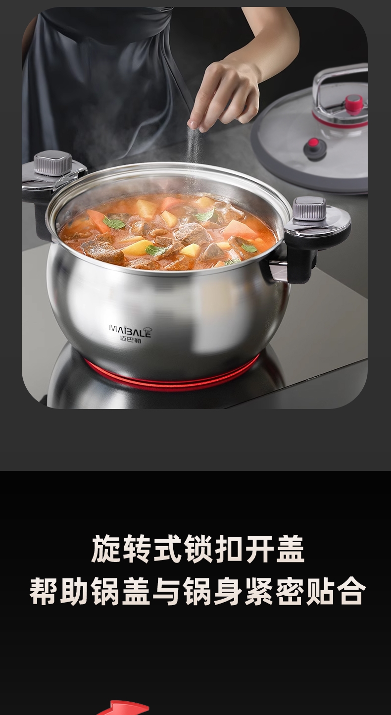 迈巴勒 不锈钢微压锅家用蒸煮汤多用途锅M-3003