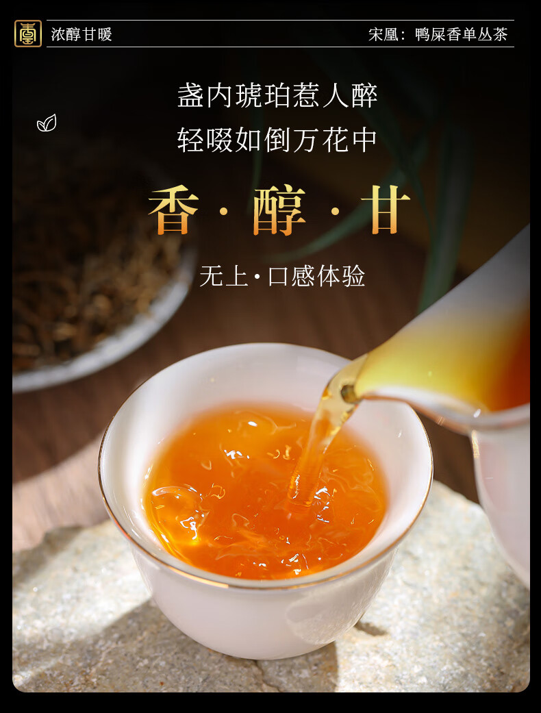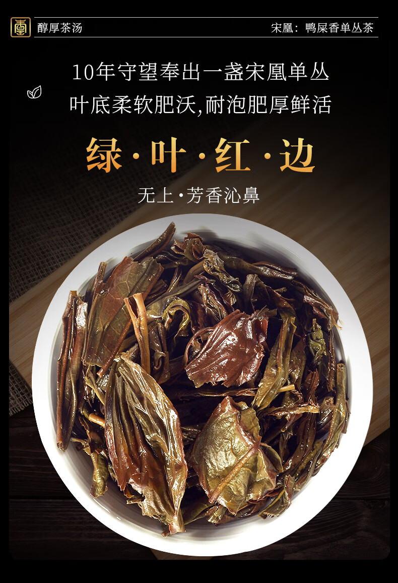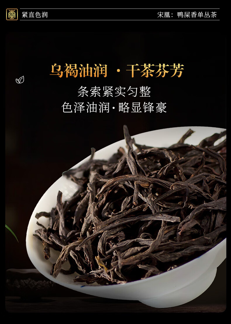 条索紧实匀整,色泽油润·略显锋豪;10年守望奉出一盏宋凰单丛;叶底柔软肥沃.耐泡肥厚鲜活