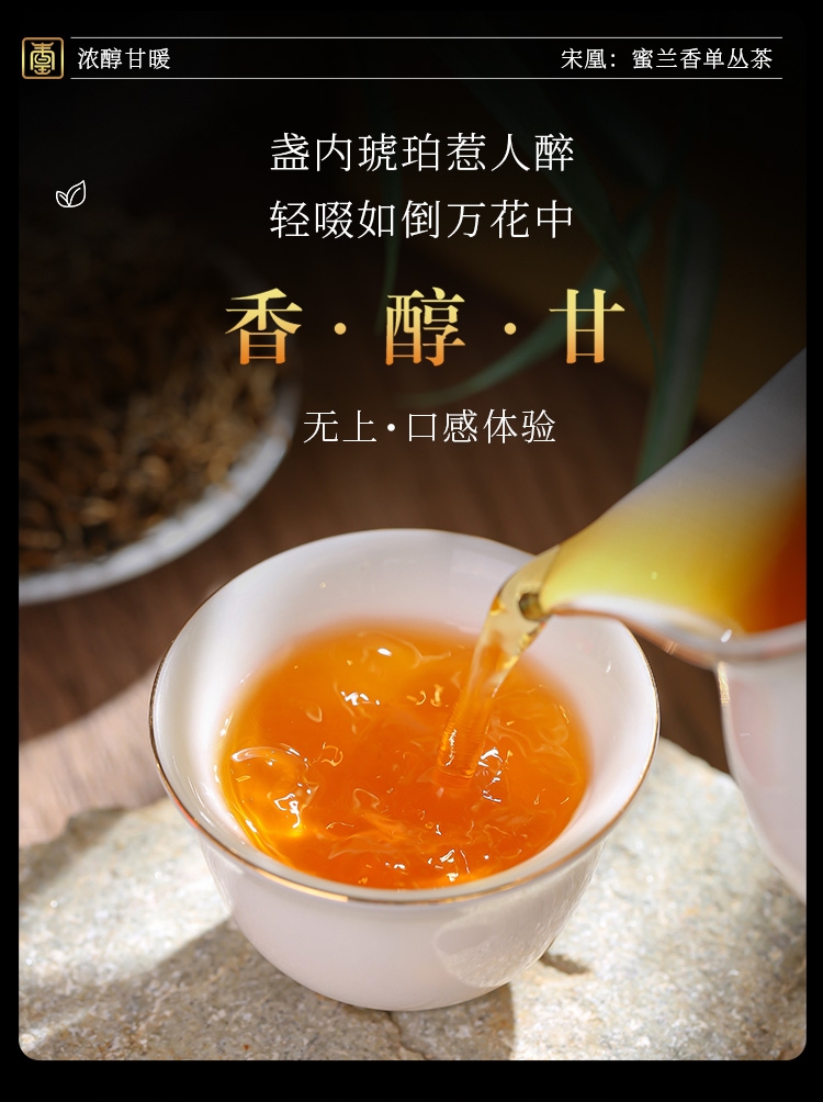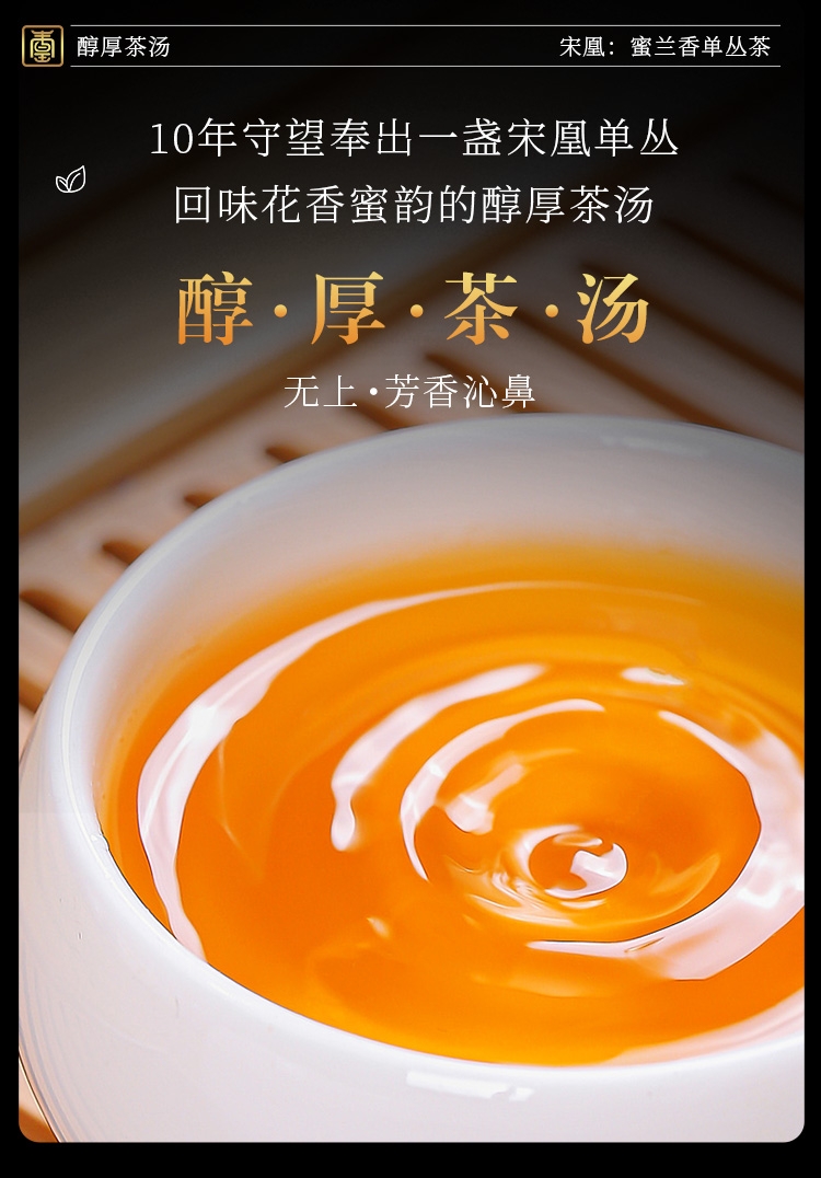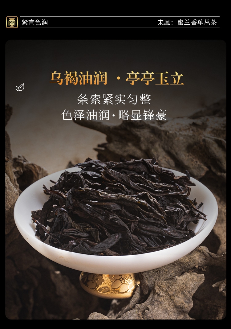 条索紧实匀整,色泽油润·略显锋豪;10年守望奉出一盏宋凰单丛;回味花香蜜韵的醇厚茶汤