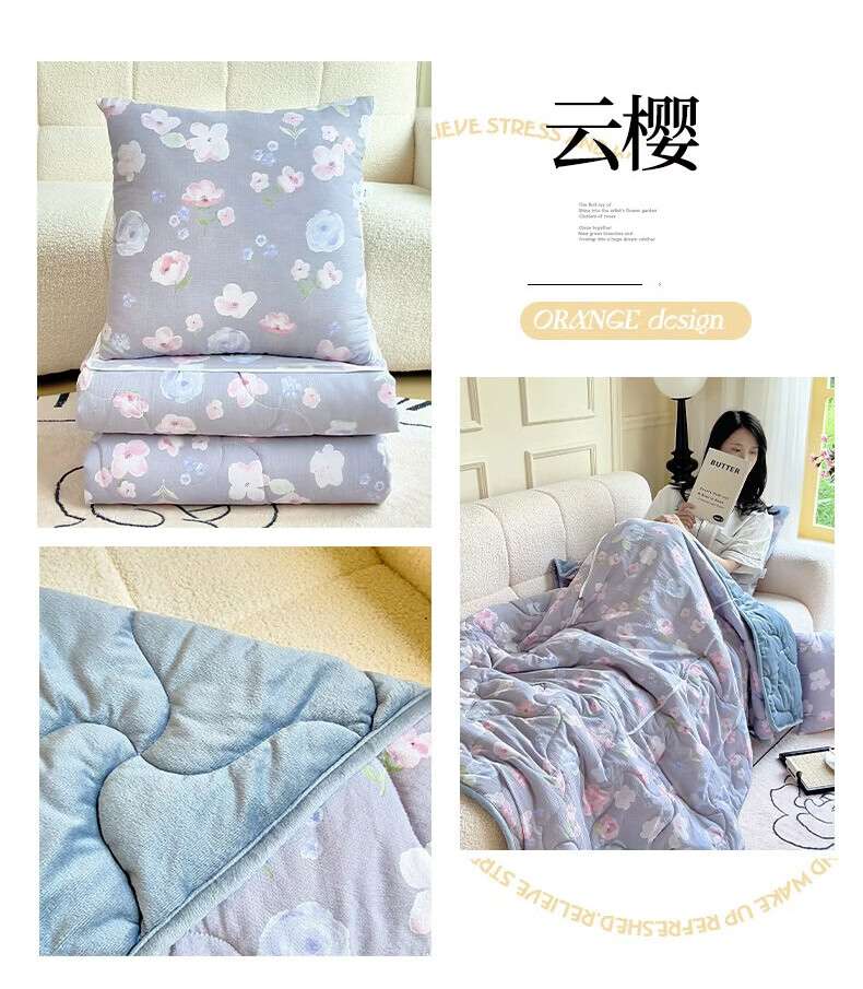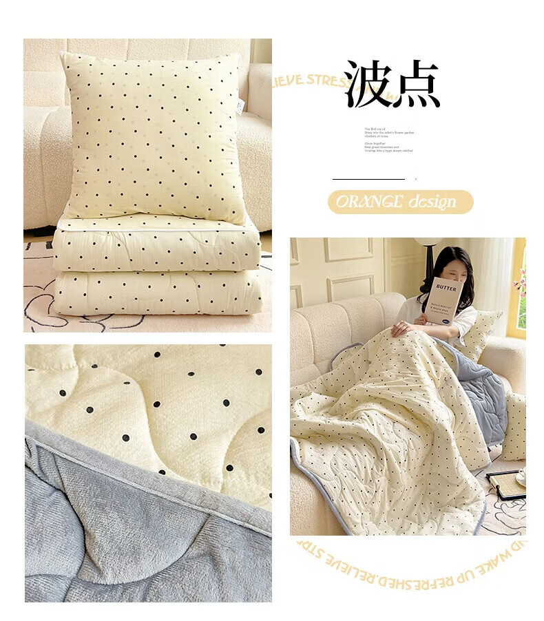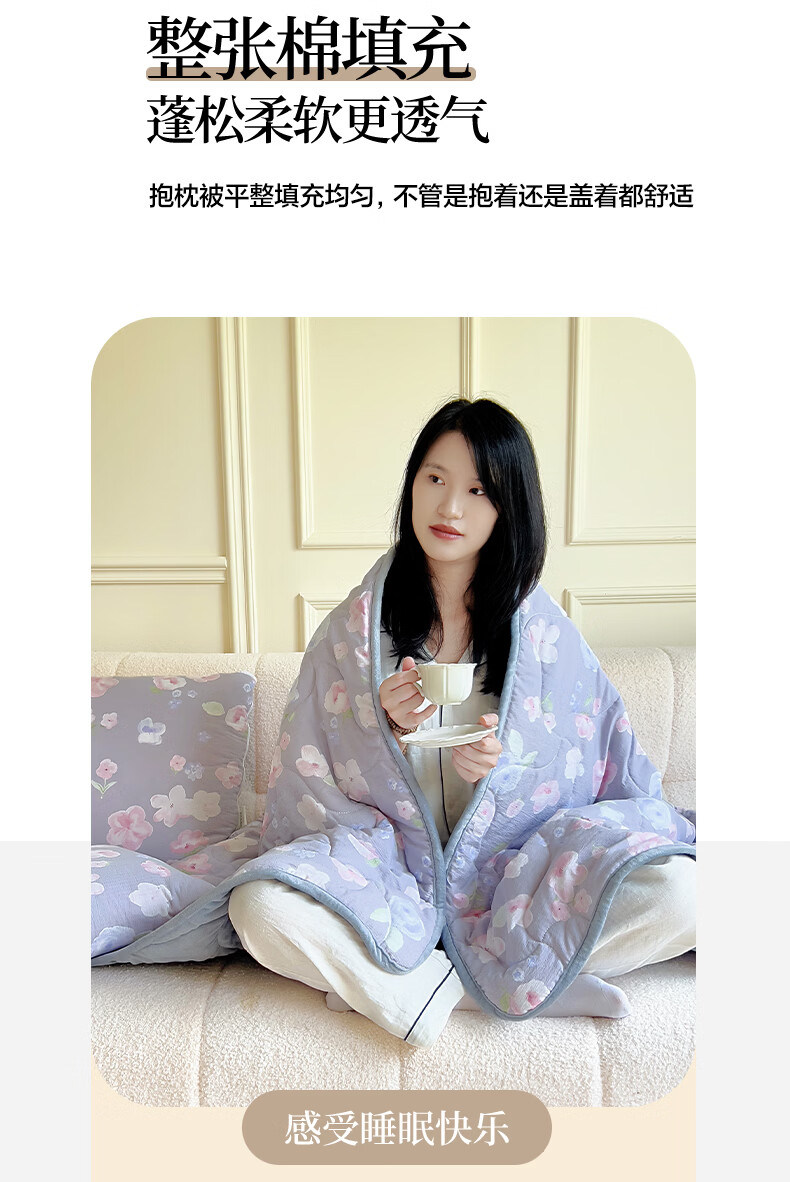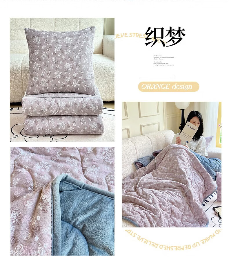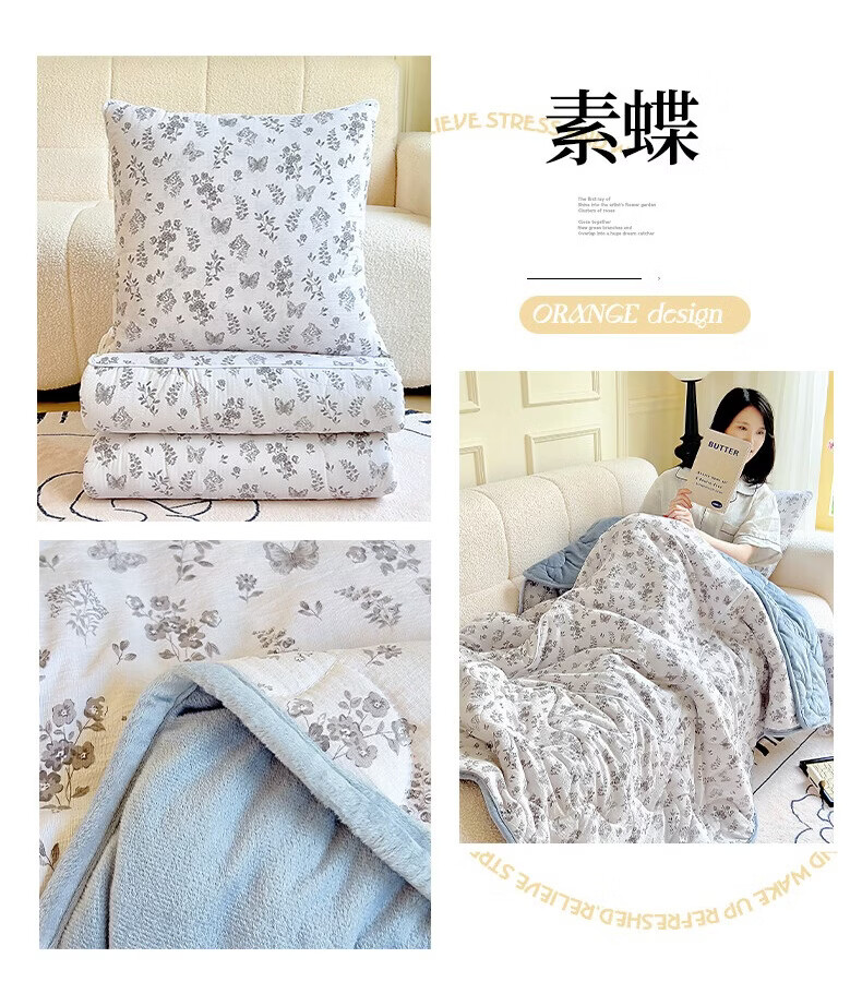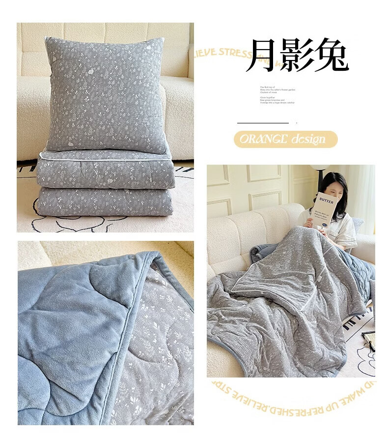 超柔水晶绒面料,亲肤柔软细腻;合上是抱枕,打开是多功能盖毯,一物多用;A版木棉面料 B版水晶绒面料 填充 整张棉填充