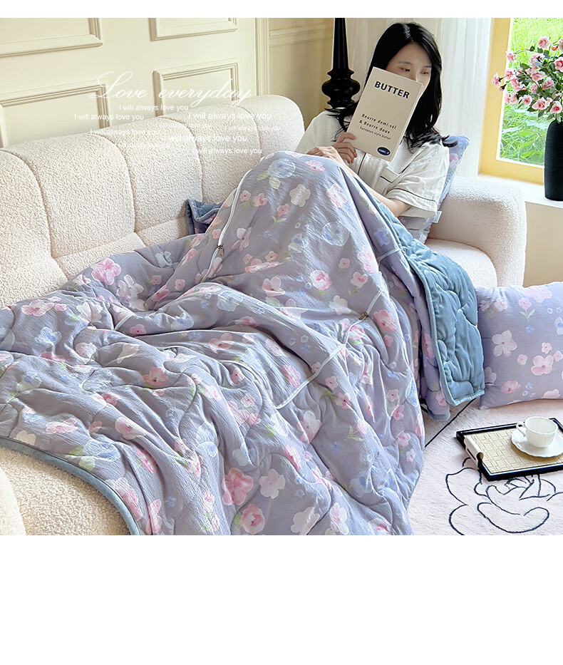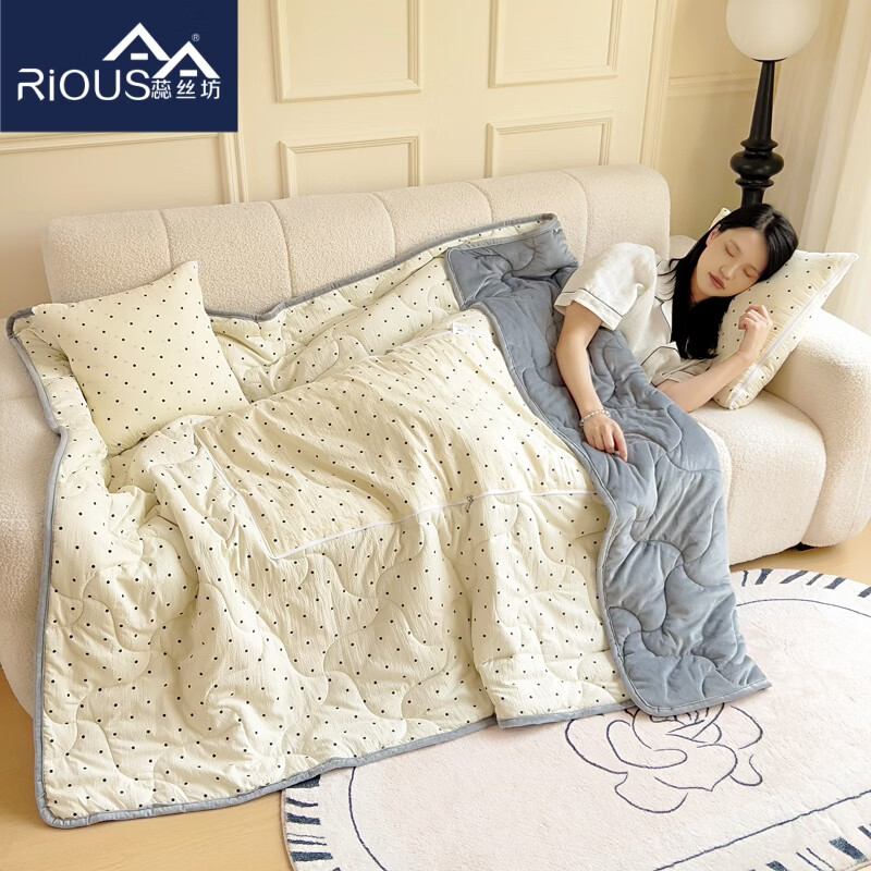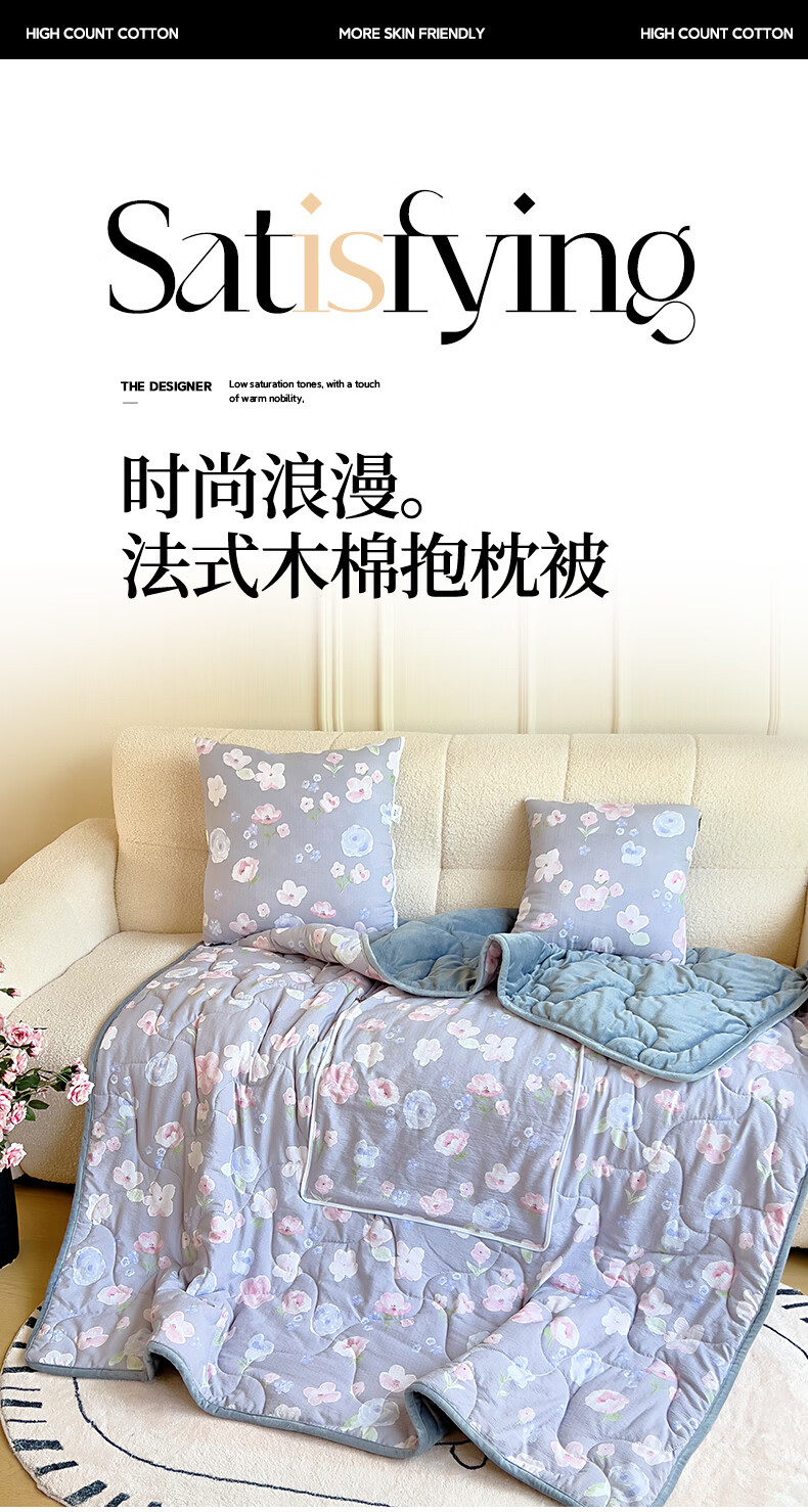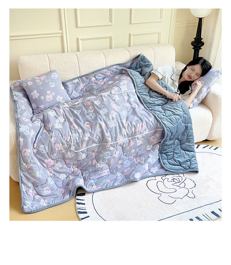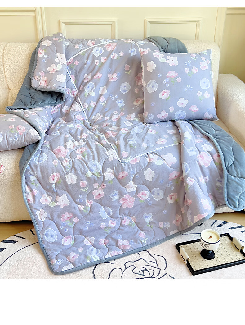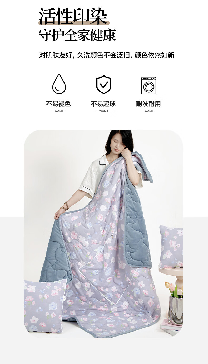 超柔水晶绒面料,亲肤柔软细腻;合上是抱枕,打开是多功能盖毯,一物多用;A版木棉面料 B版水晶绒面料 填充 整张棉填充