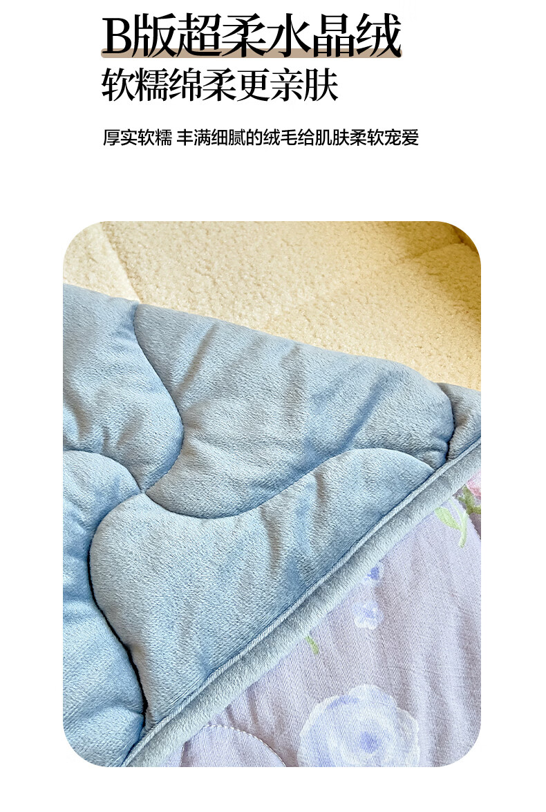 面料::A版木棉面料 B版水晶绒面料 填充 整张棉填充 多针絎绣包边