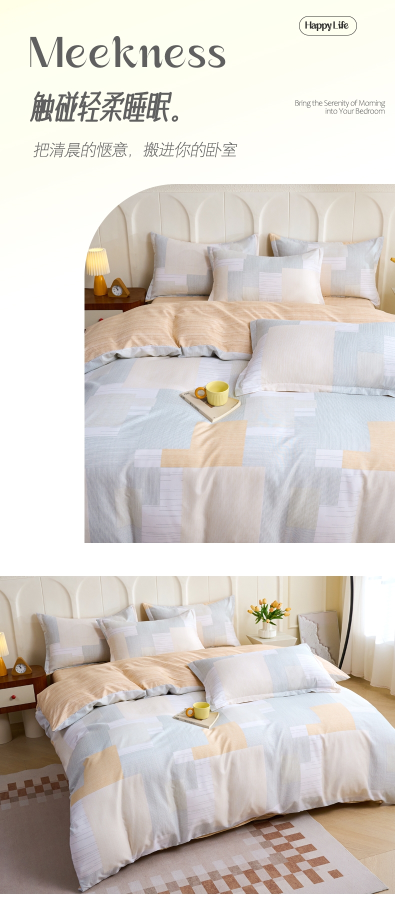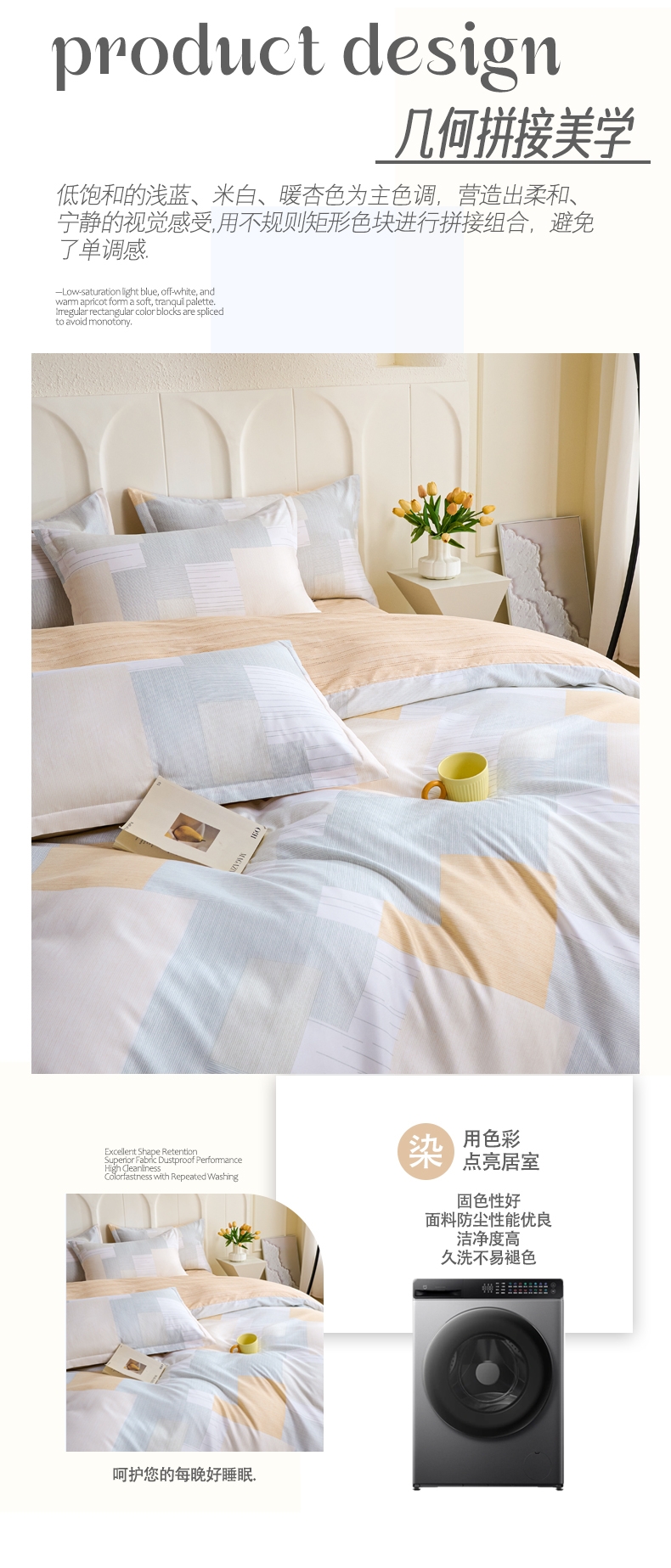 亲肤棉感聚酯纤维,柔软细腻不闷汗;耐磨抗皱好打理,机洗不变形 透气亲肤不压身;夜夜安睡不粘腻,柔软贴身,告别粗糙化纤感