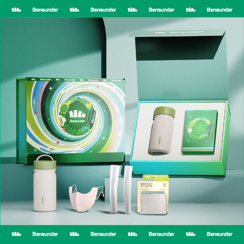 保温杯:长效锁温,四季随行;高弹防晒冰袖: 冰感防晒,抬手即凉;防晒口罩:高倍防晒,透气不闷