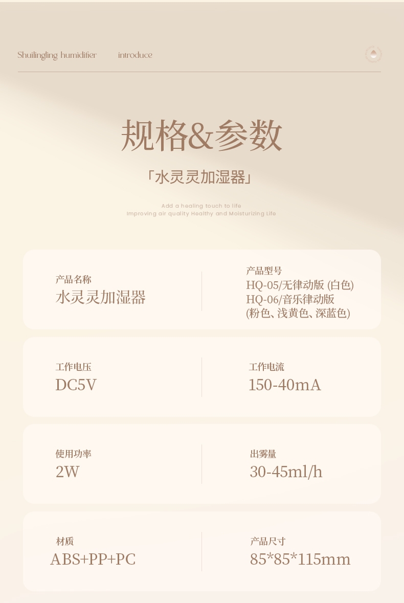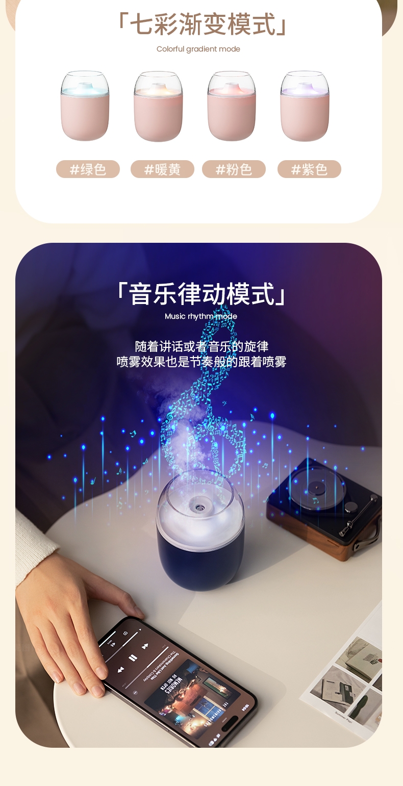 Pengdexin 音乐律动氛围灯桌面迷你加湿器HQ-05/HQ-06
