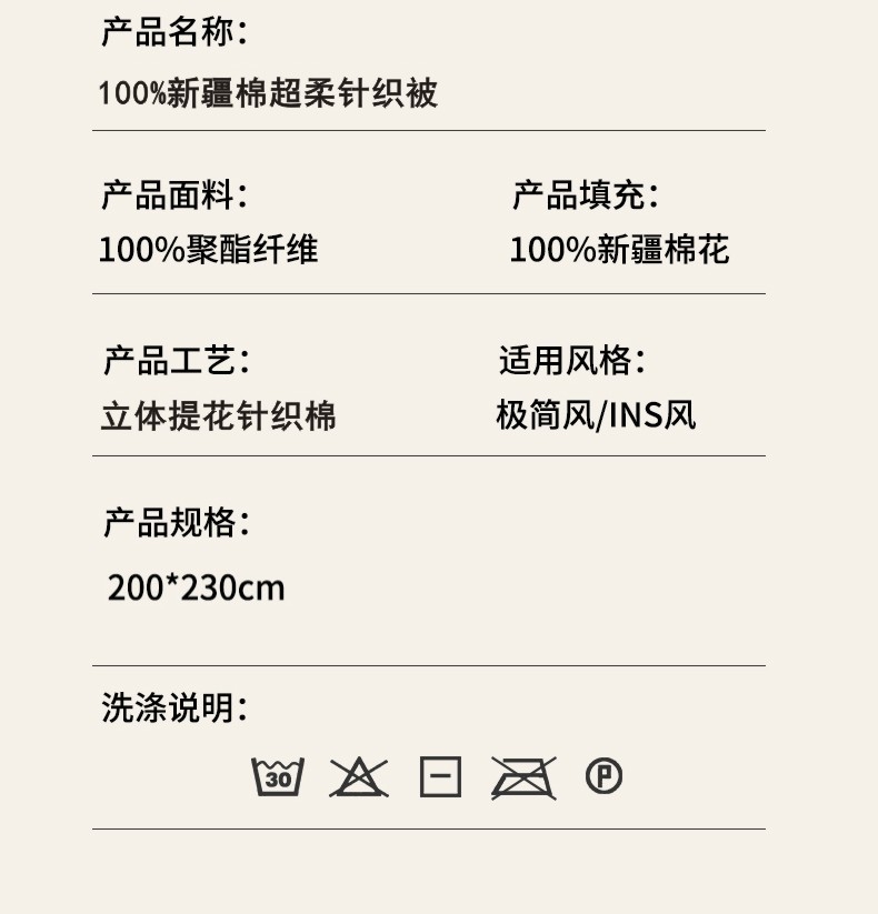 彼加曼 100%新疆棉超柔针织被BGM-B2606