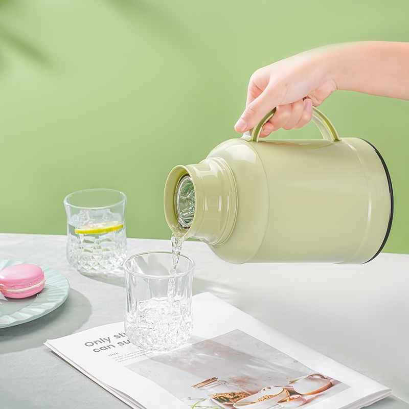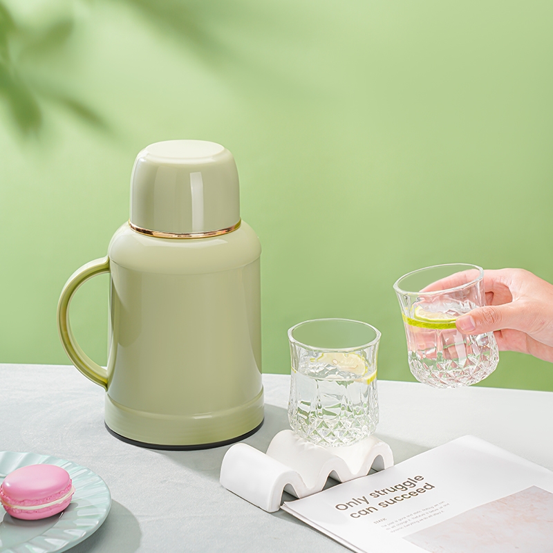 清新保温壶采用高品质玻璃内胆无毒无害,保温效果好;简约优雅手柄设计握持舒适;无论是家居、办公场景,都能成为视觉亮点