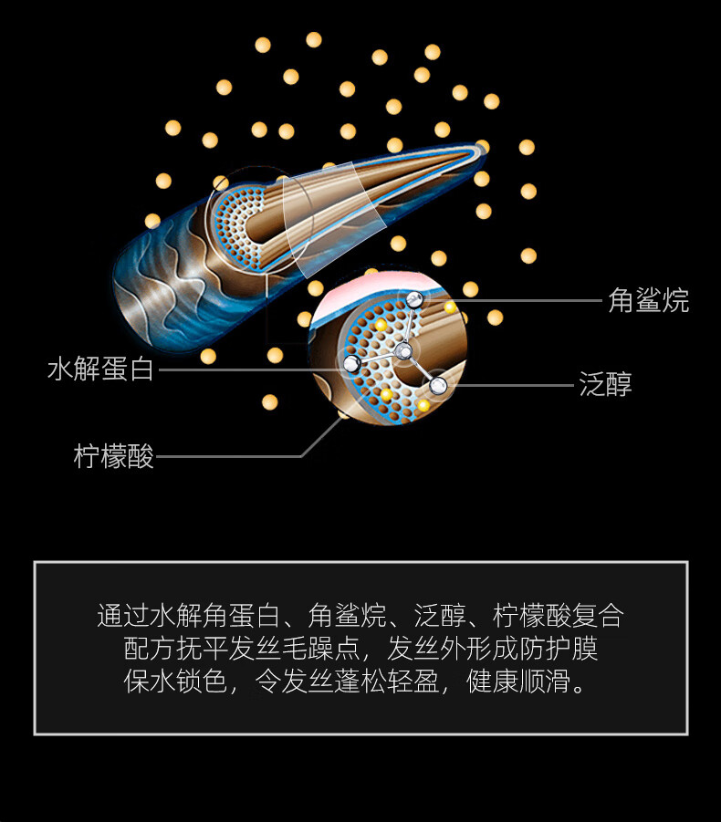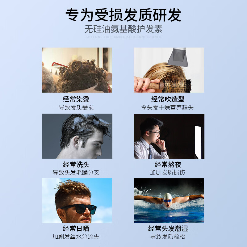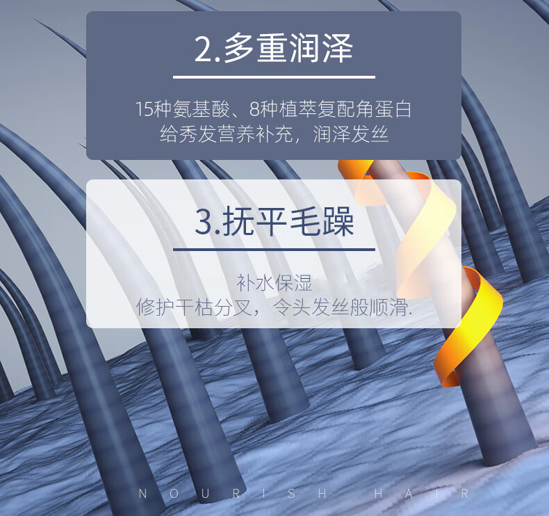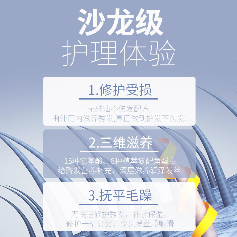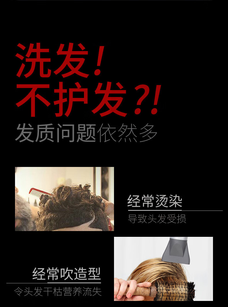 深层滋养与修复:护发素富含多种滋养成分修复受损发质;柔顺易梳,减少打结:减少静电和摩擦,使头发更加柔顺;便捷使用,节省时间:护发素设计便捷,易于涂抹和冲洗