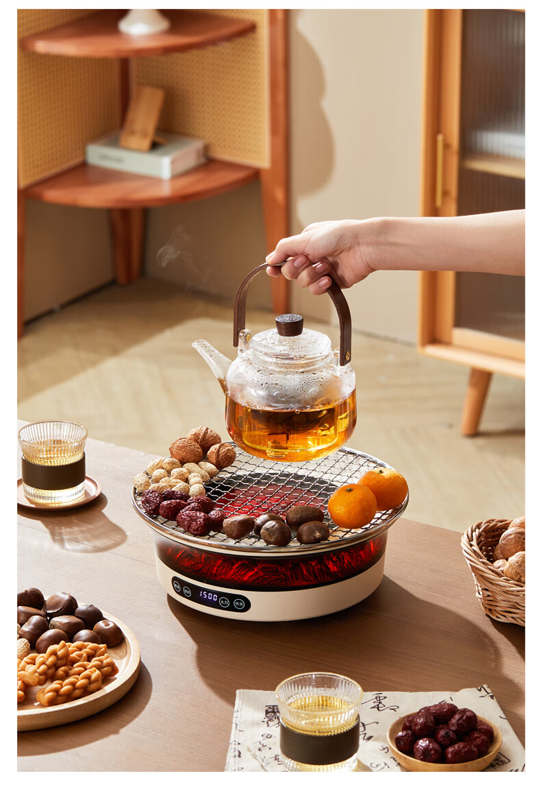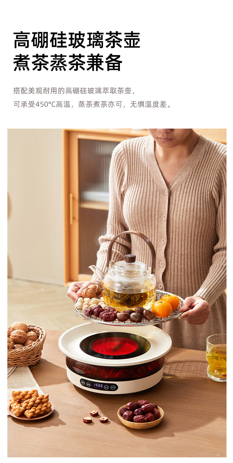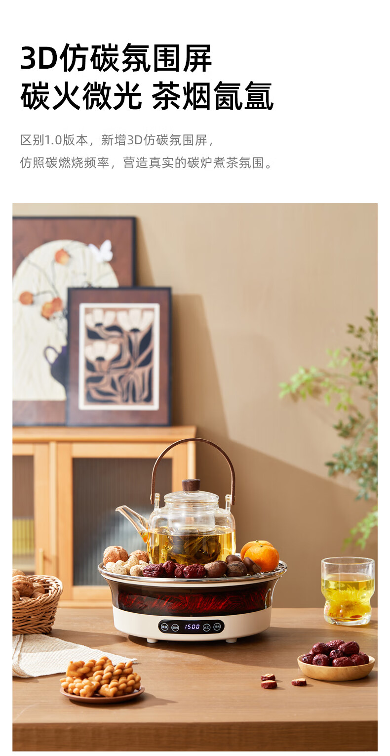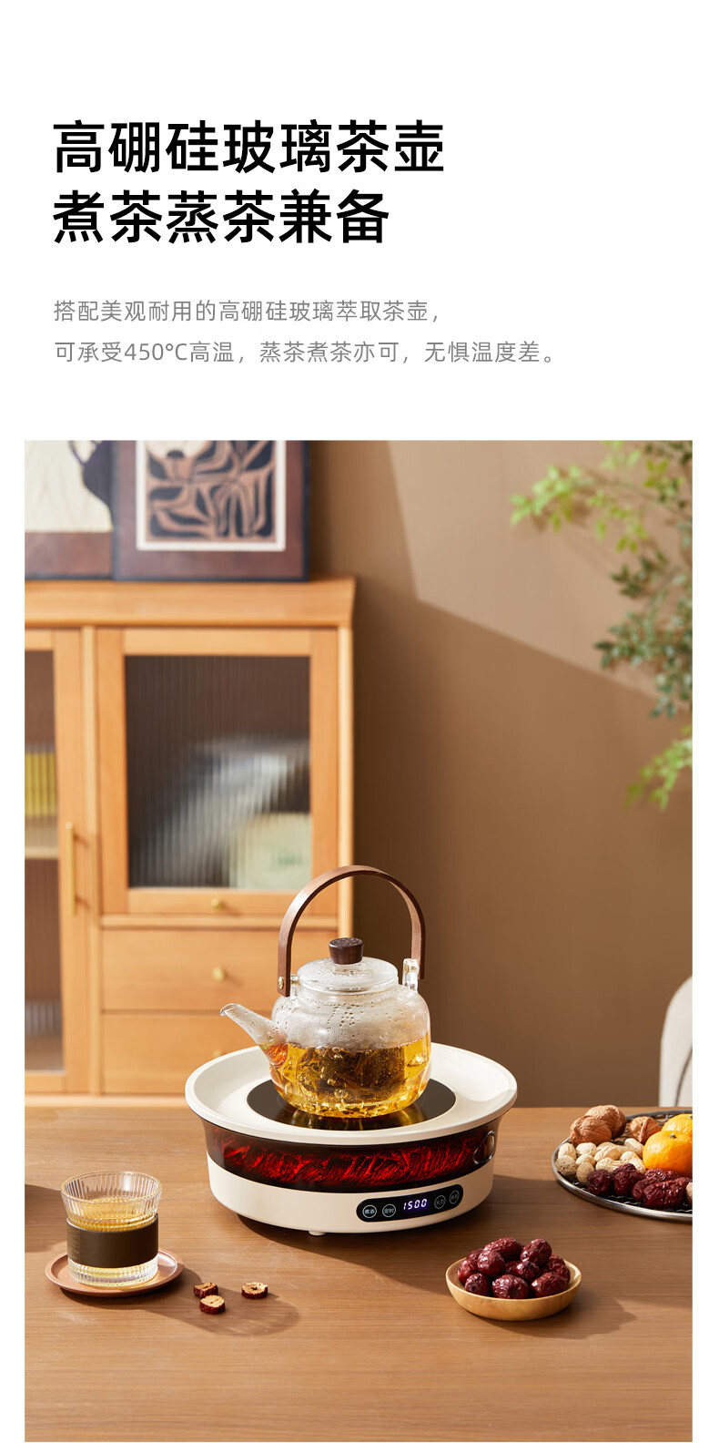 3D仿碳氛围屏碳火微光茶烟氤氲;高硼硅玻璃茶壶煮茶蒸茶兼备;170mm发热直径匀热煮茶茶味浓郁