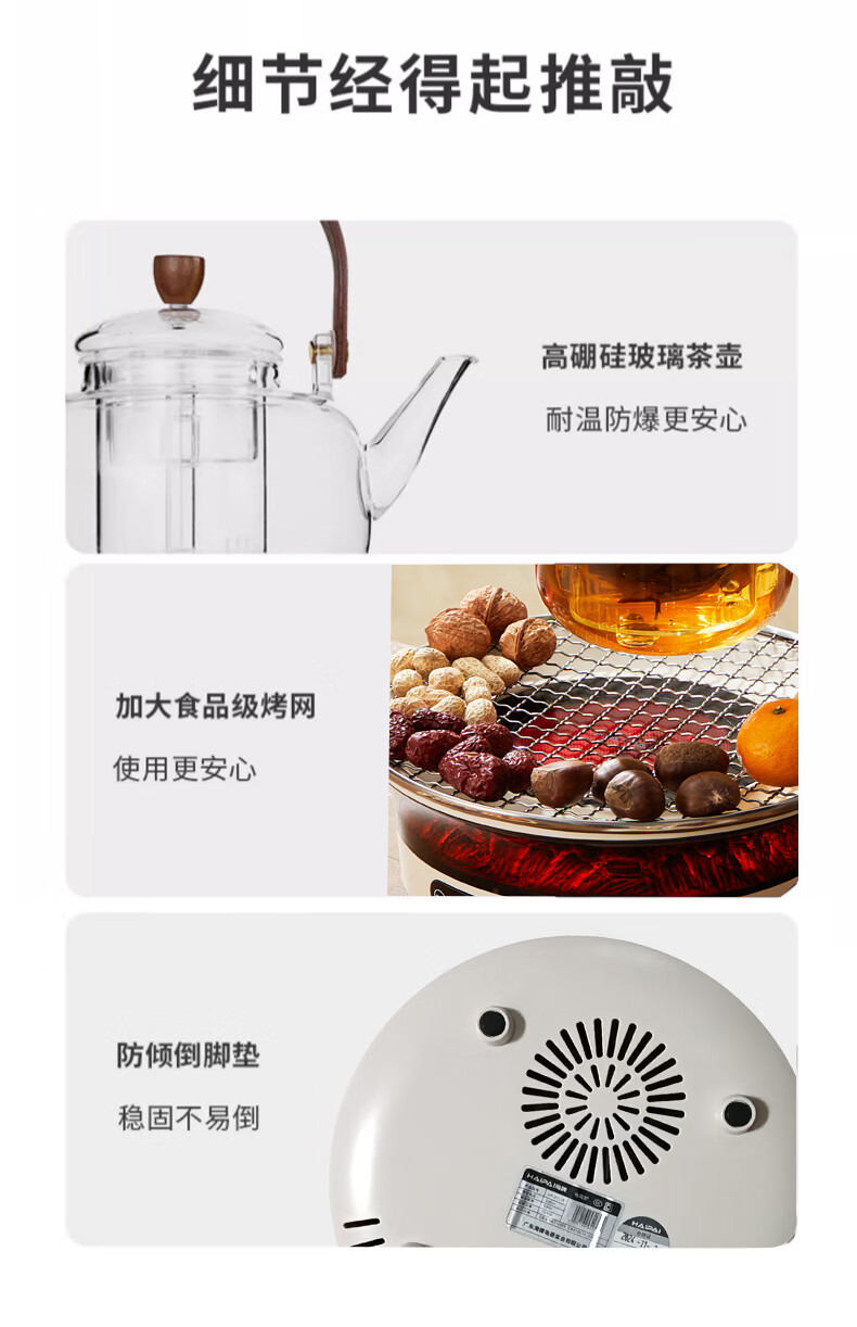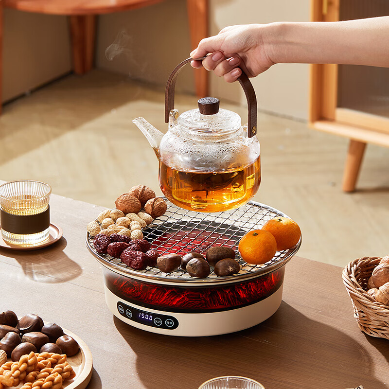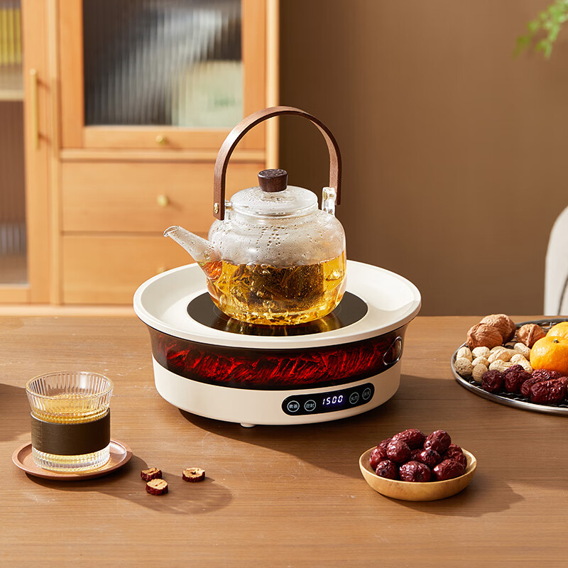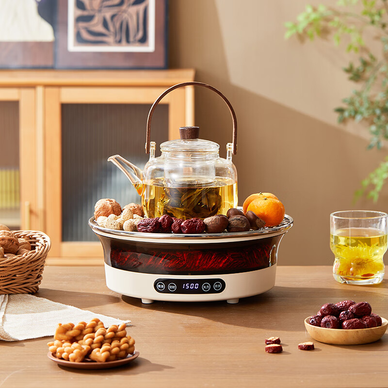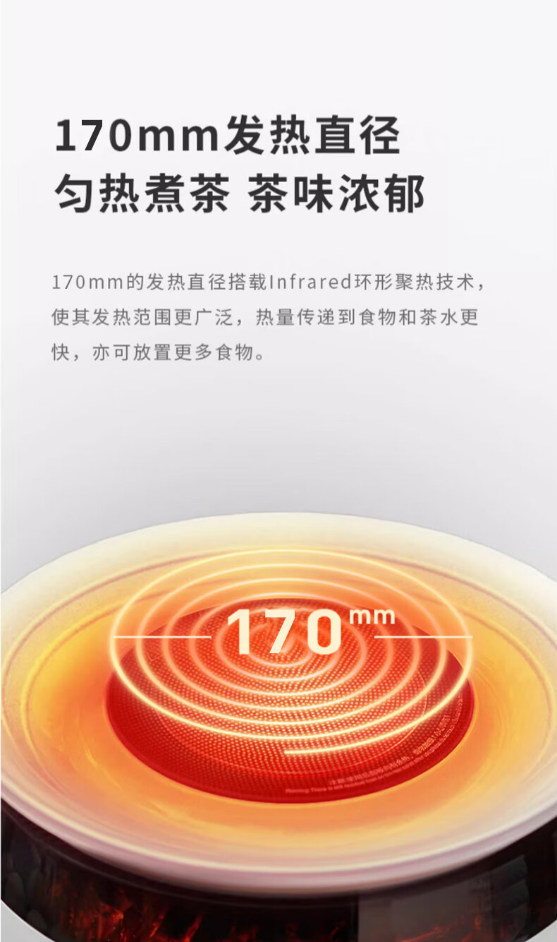 3D仿碳氛围屏碳火微光茶烟氤氲;高硼硅玻璃茶壶煮茶蒸茶兼备;170mm发热直径匀热煮茶茶味浓郁