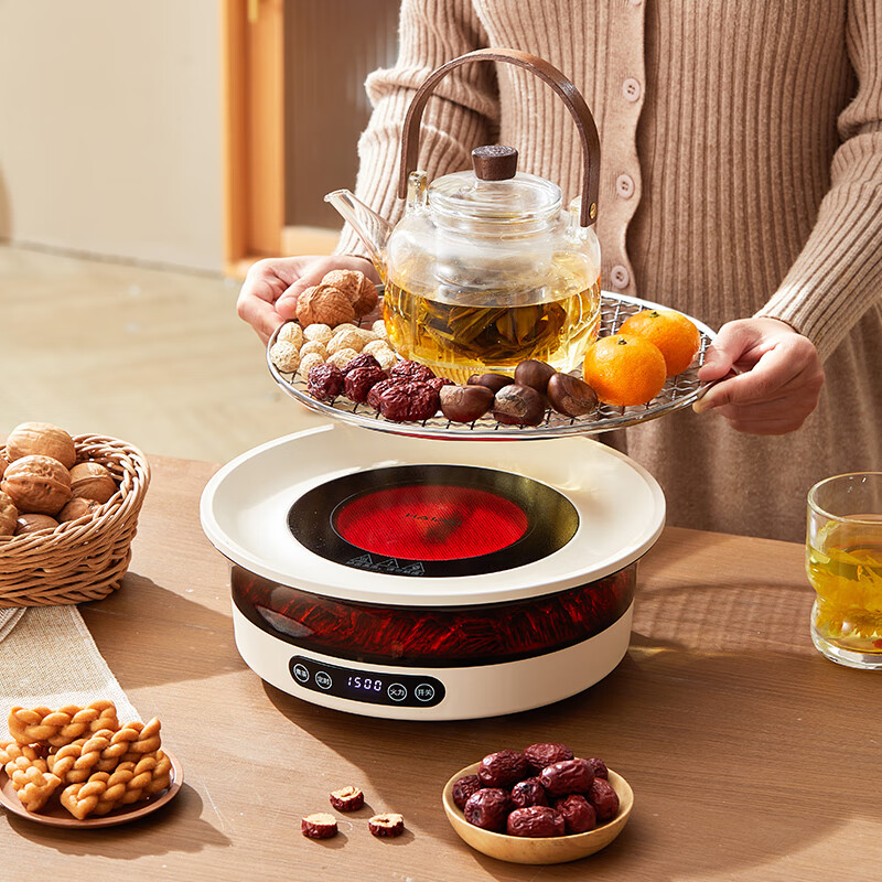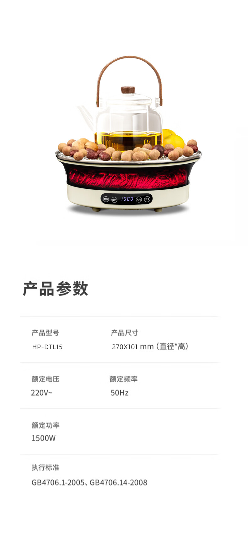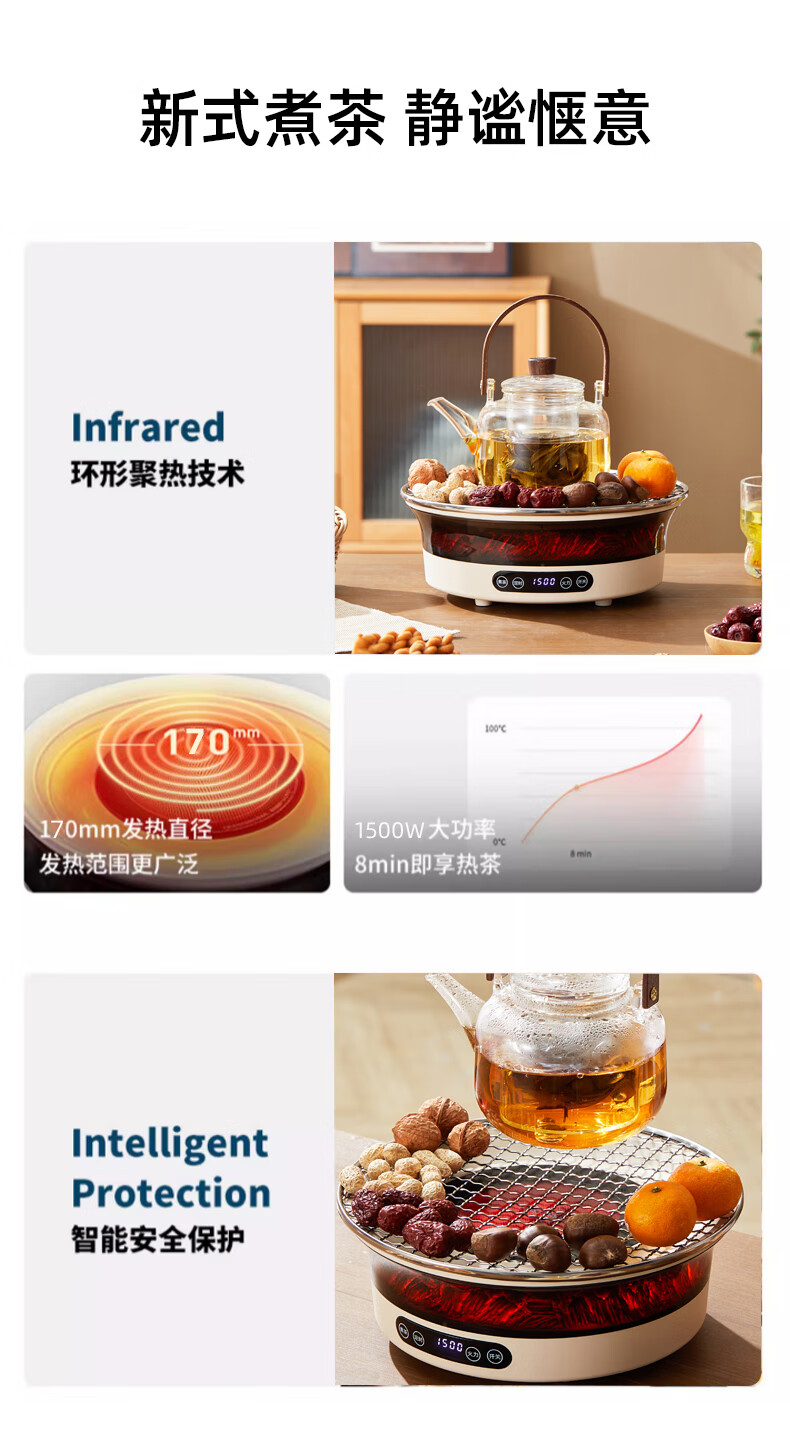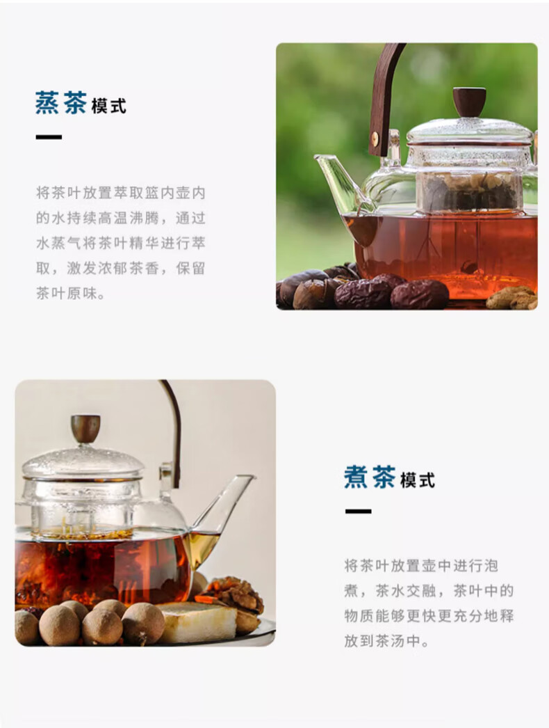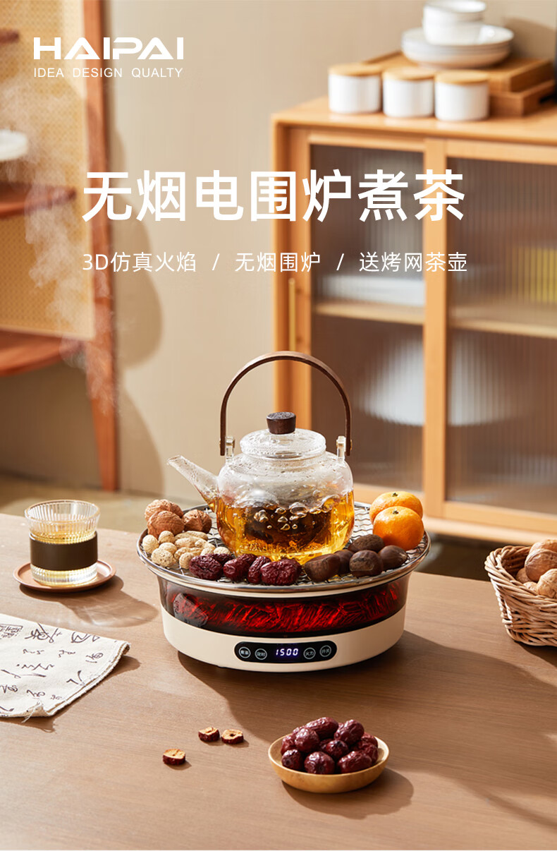 3D仿碳氛围屏碳火微光茶烟氤氲;高硼硅玻璃茶壶煮茶蒸茶兼备;170mm发热直径匀热煮茶茶味浓郁