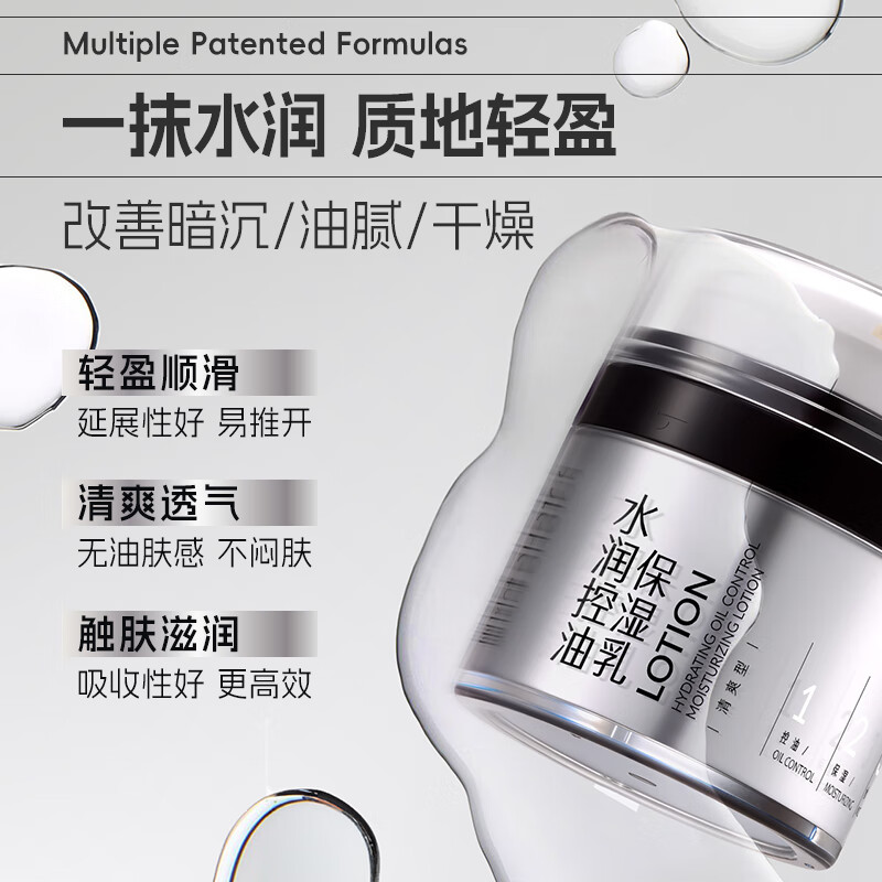 控油保湿双效合一:专为油性及混合性肤质设计,添加控;深层滋润:富含多种滋润成分,如透明质酸和神经酰胺;质地轻薄易吸收:乳液质地轻盈,秒变水膜般快速化开