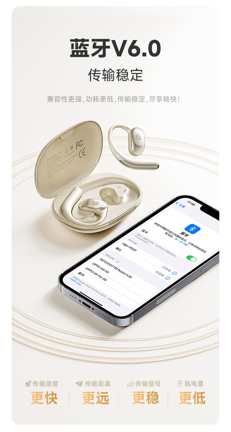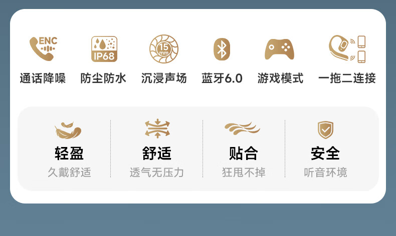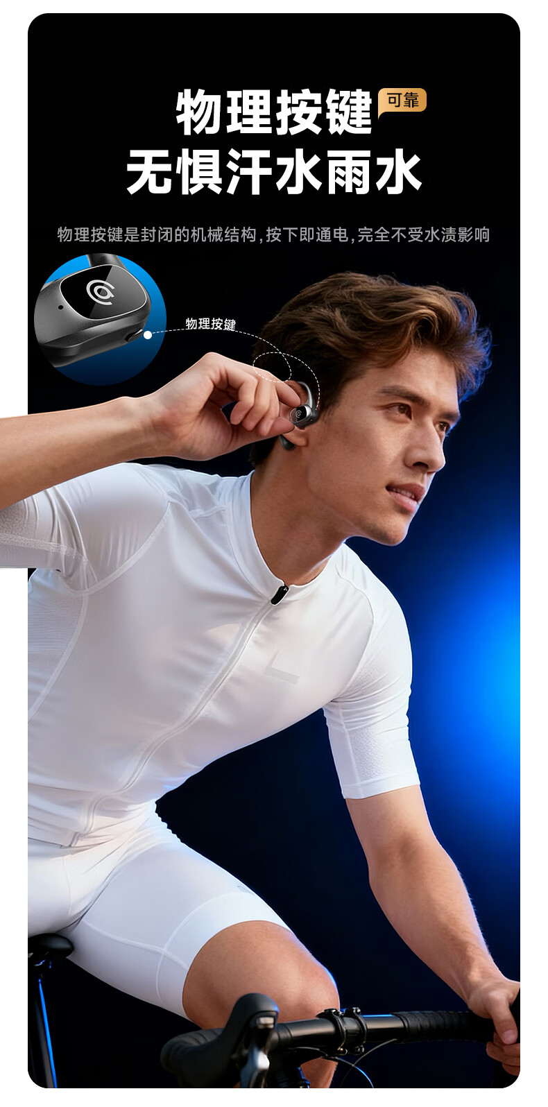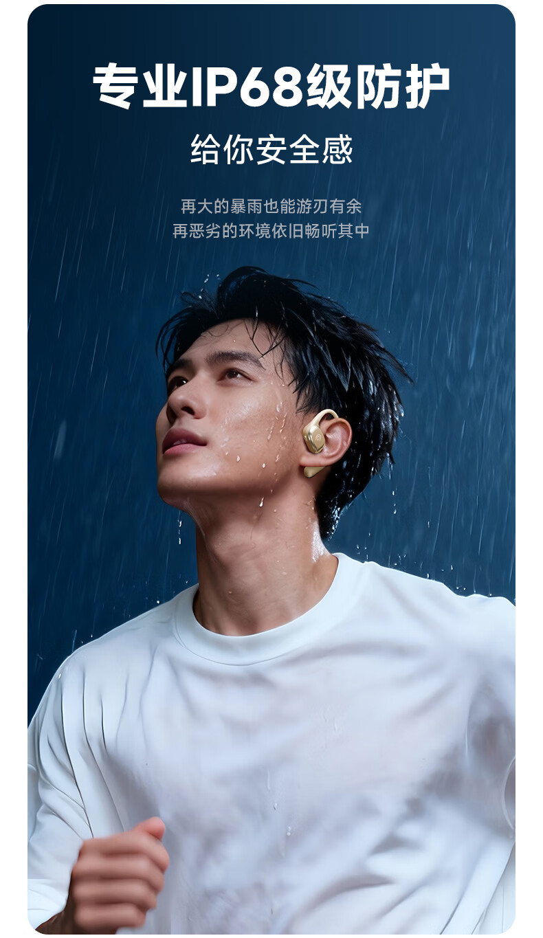 稳固贴合,动享自由;开放环境,安心畅听;专业IP68级防护, 给你安全感