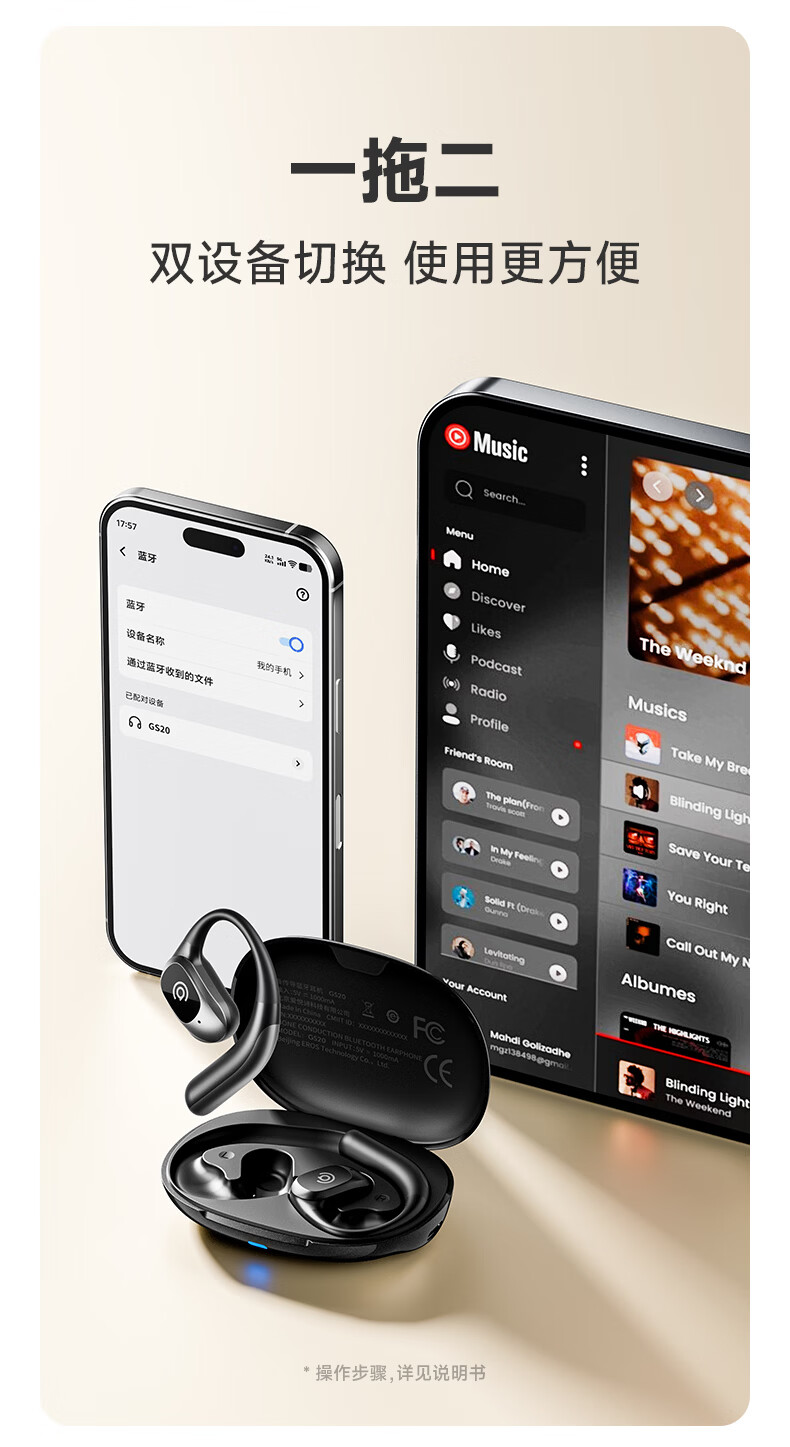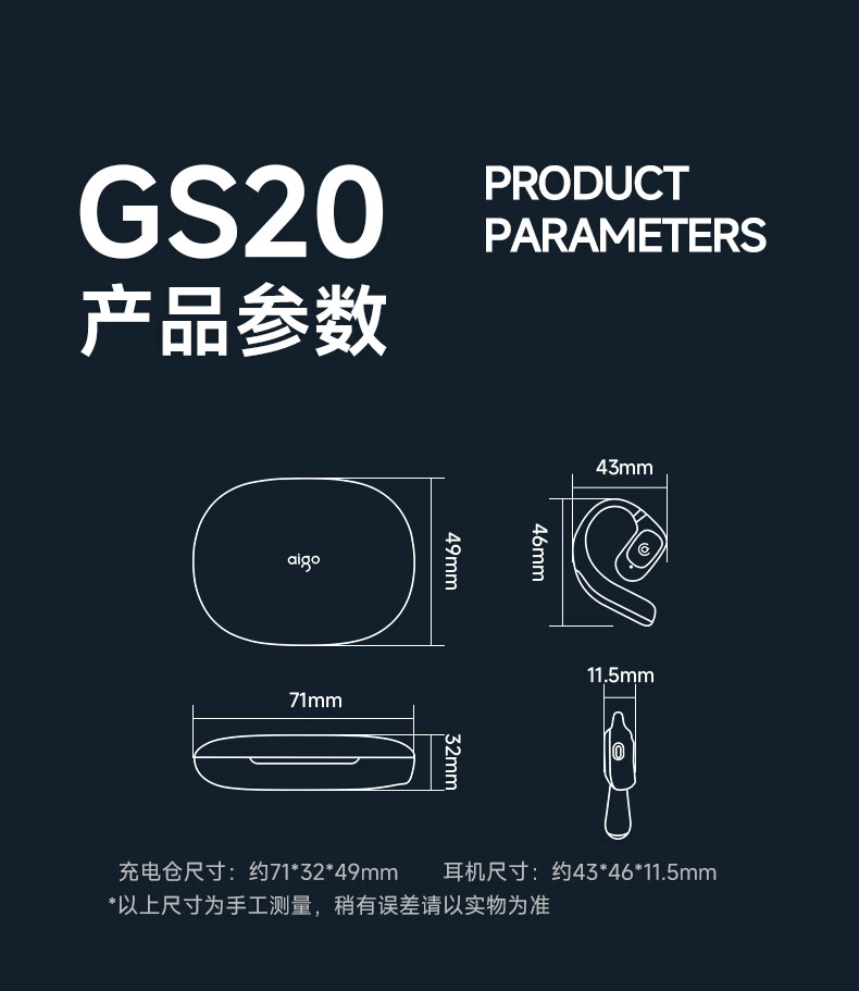 爱国者 骨传导挂耳式蓝牙耳机GS20