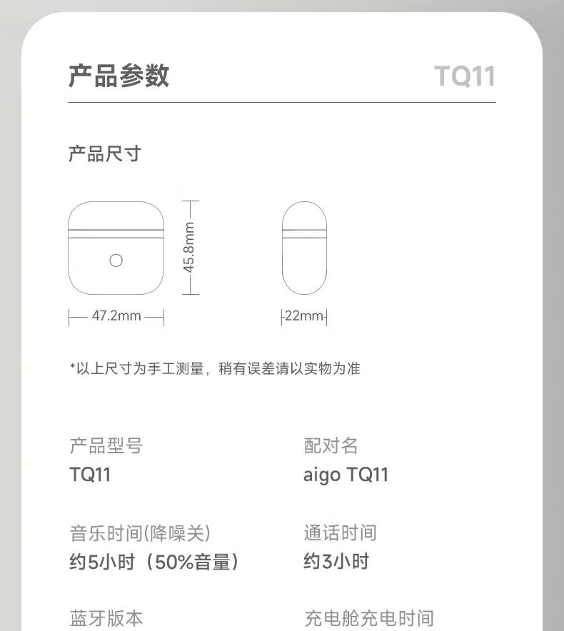 爱国者 半入耳式蓝牙耳机 TQ11