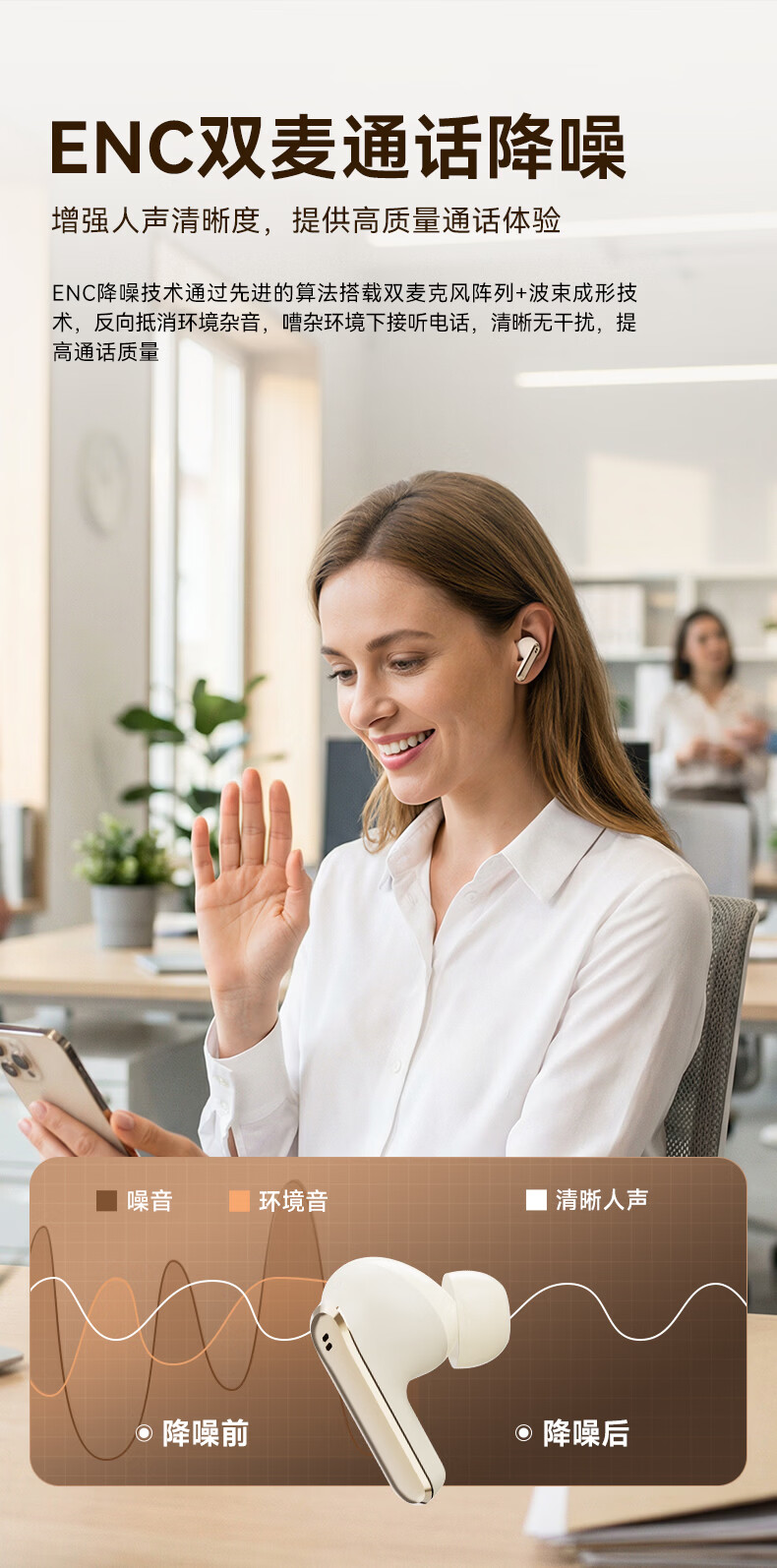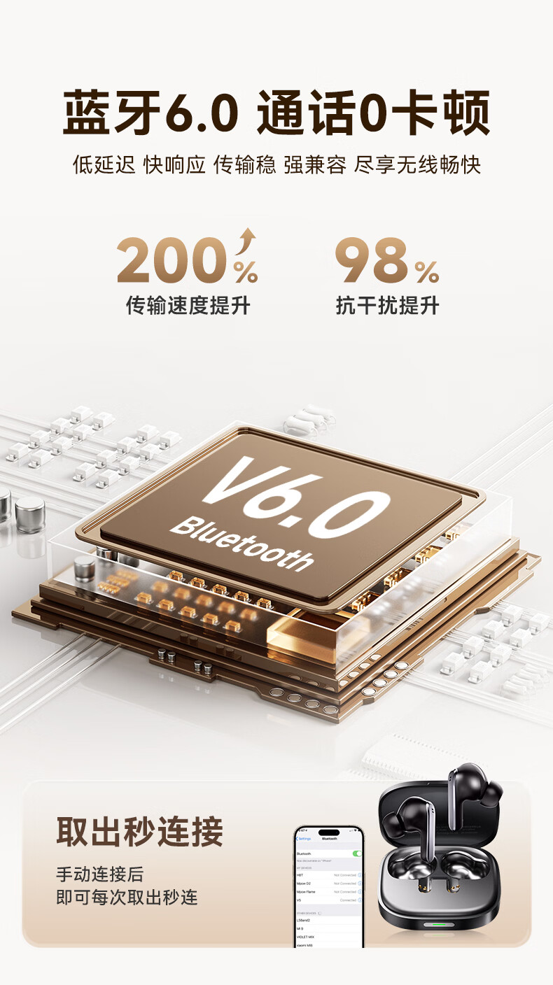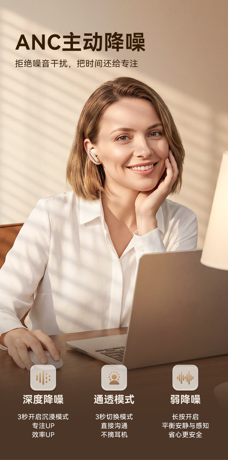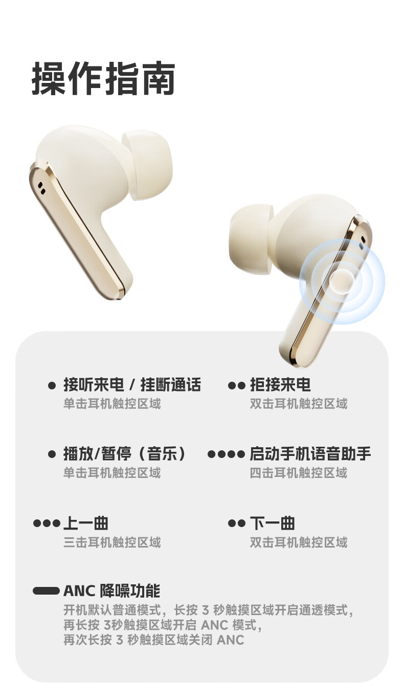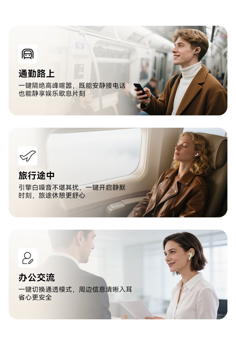 ANC主动降噪;掌心便携 ,皮革纹理质感;续航拉满, 通勤3天不用充