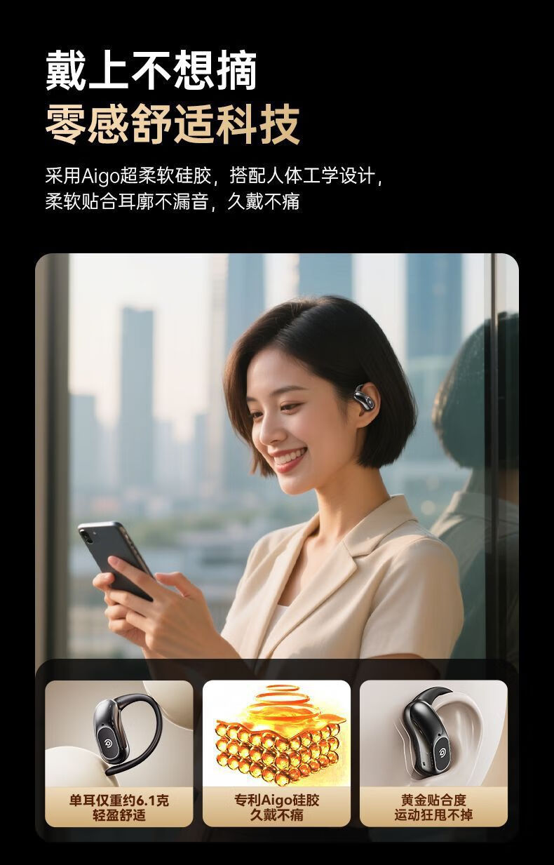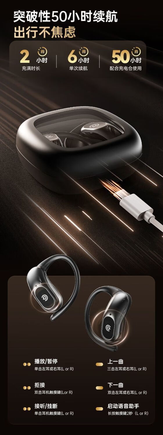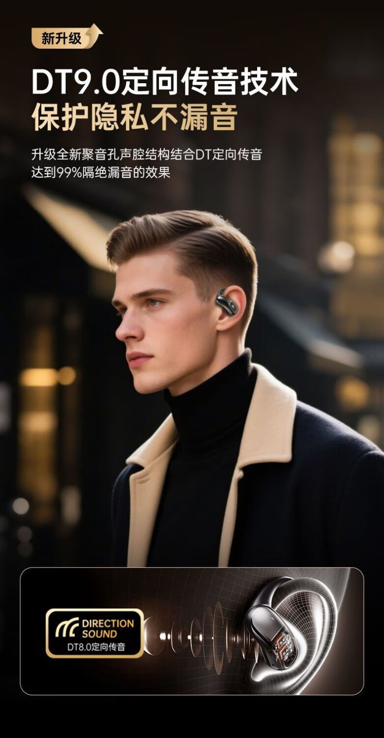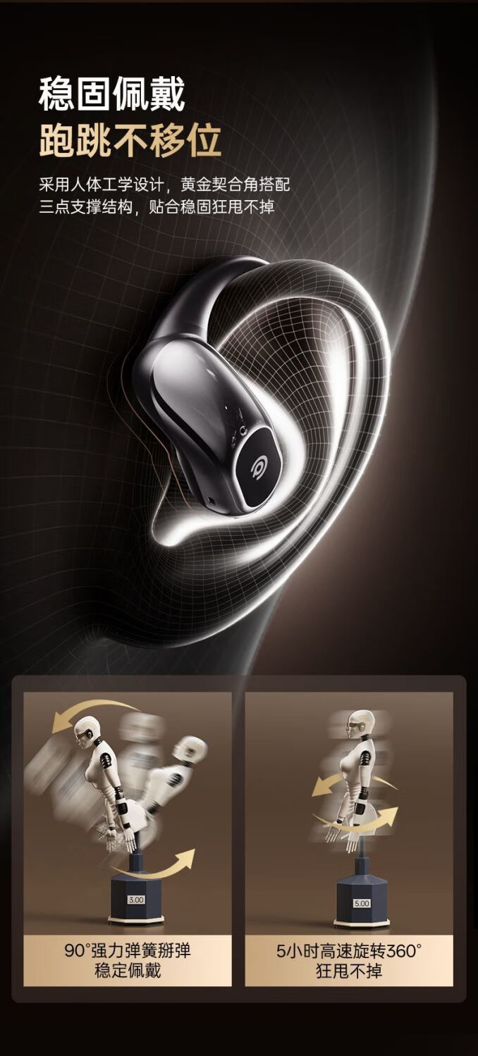 定向声聚不漏音;耳挂式云感佩戴;IPX5级防水防汗