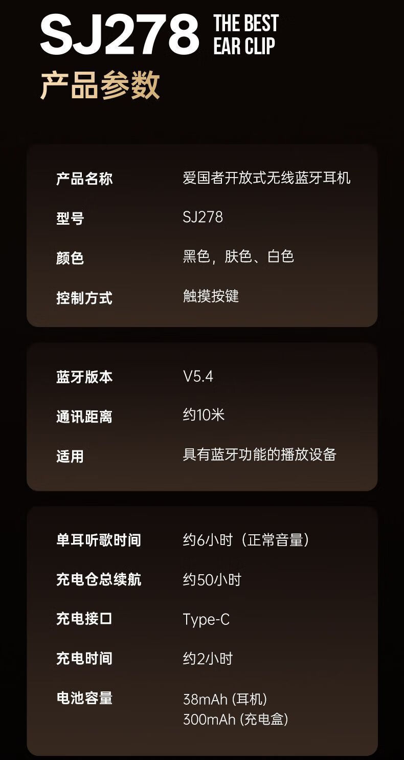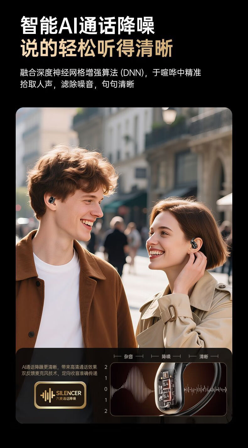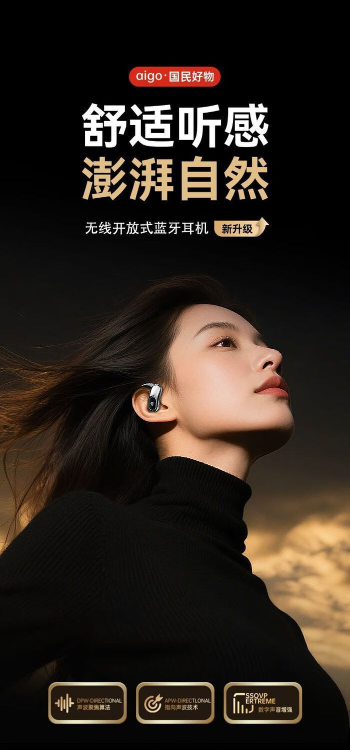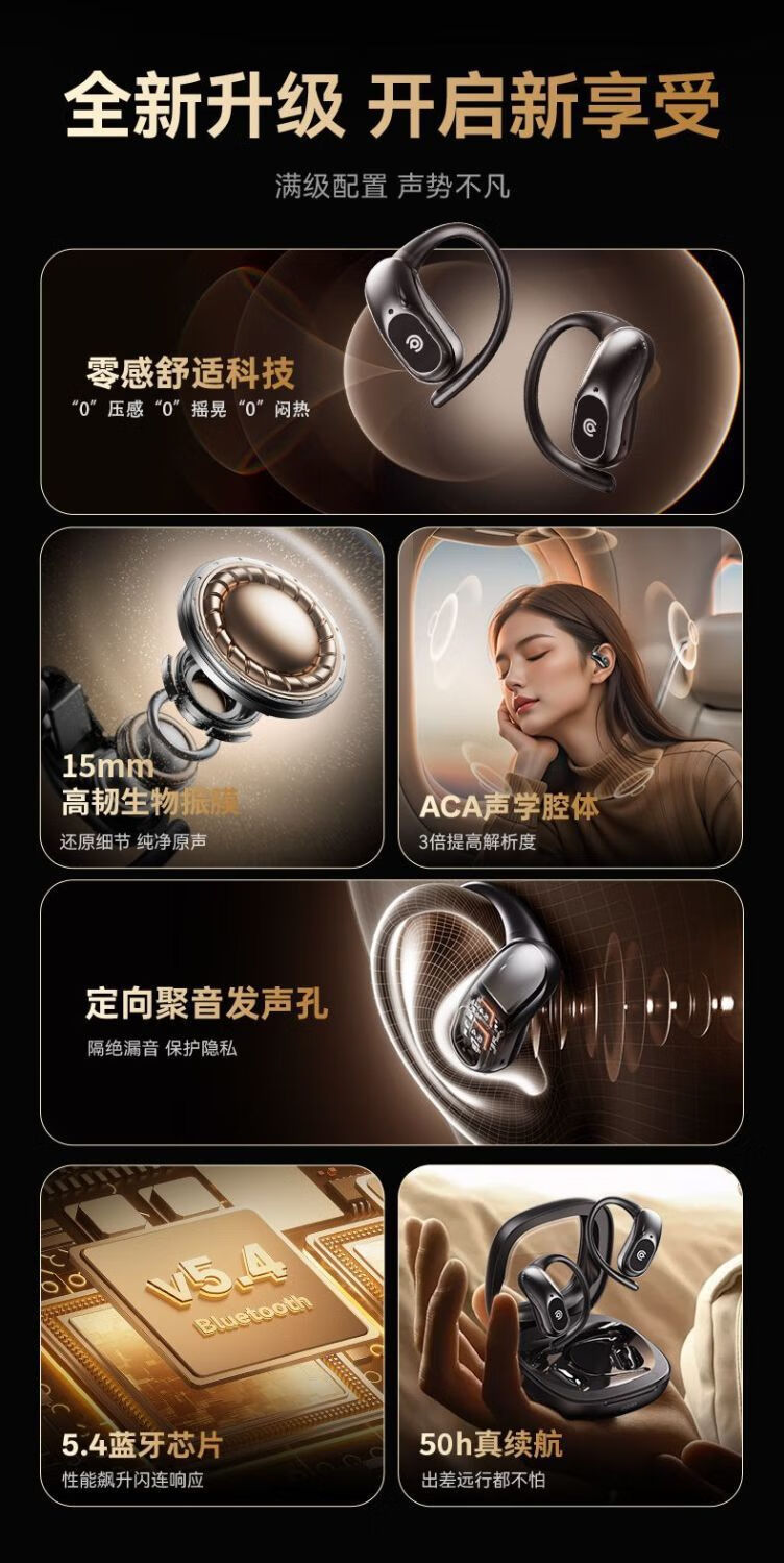 定向声聚不漏音;耳挂式云感佩戴;IPX5级防水防汗