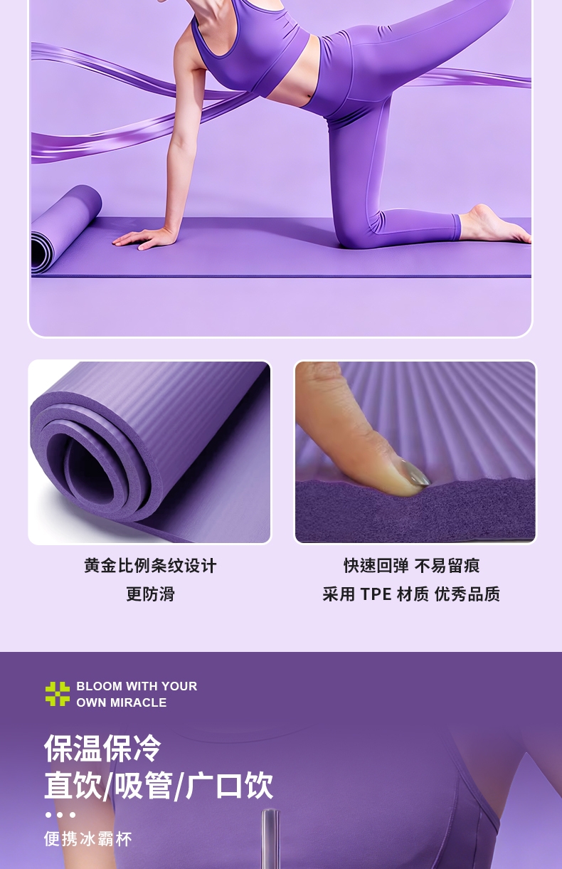 2. 瑜伽垫:温柔紫调瑜伽垫,柔软防滑,运动好搭档