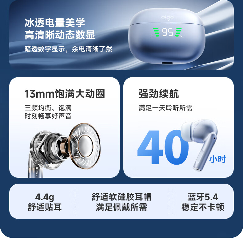 ANC主动降噪;LED动态数显;ENC通话降噪