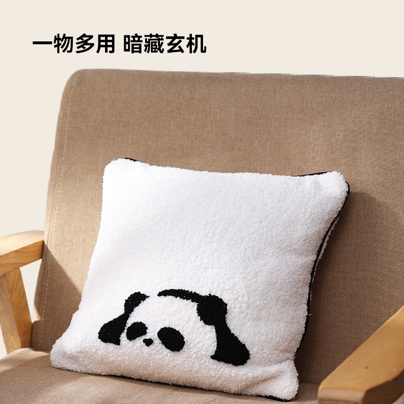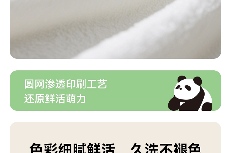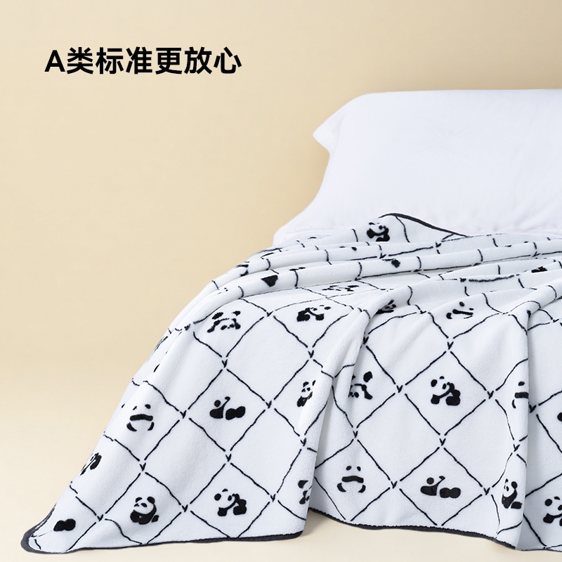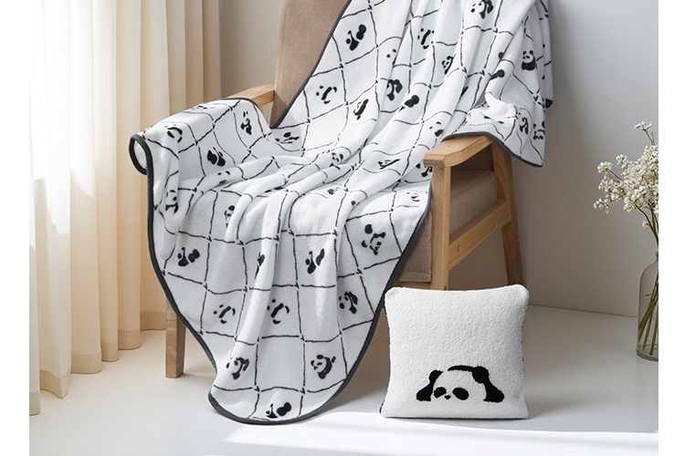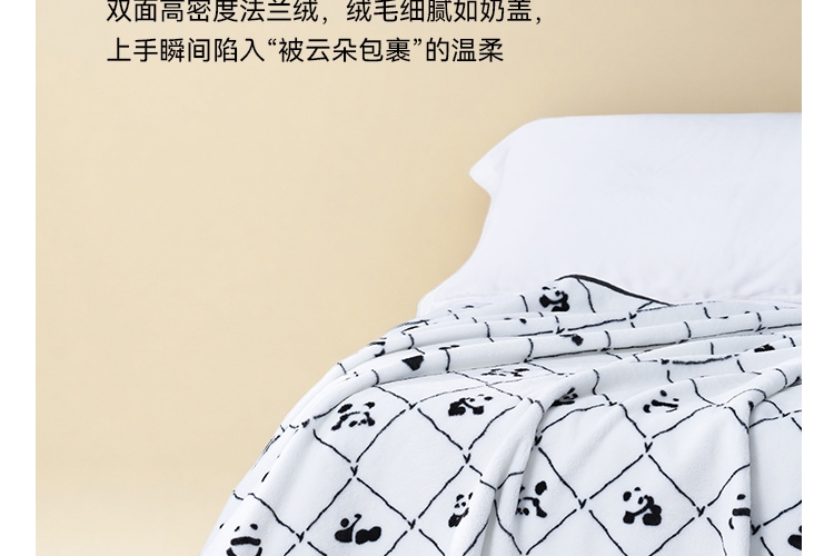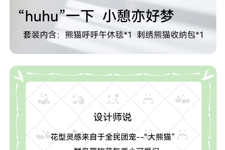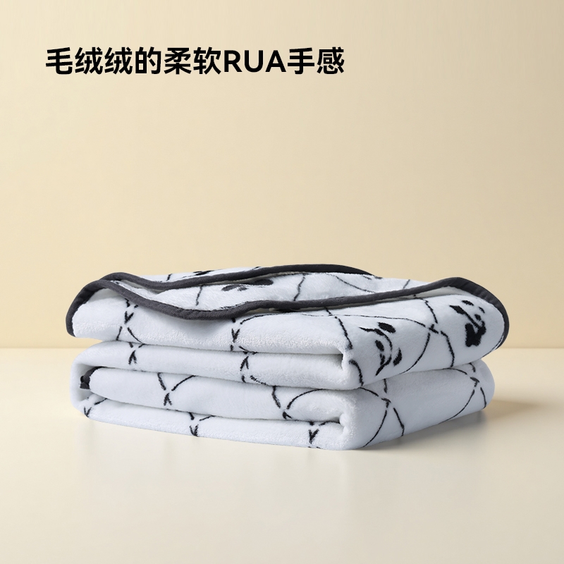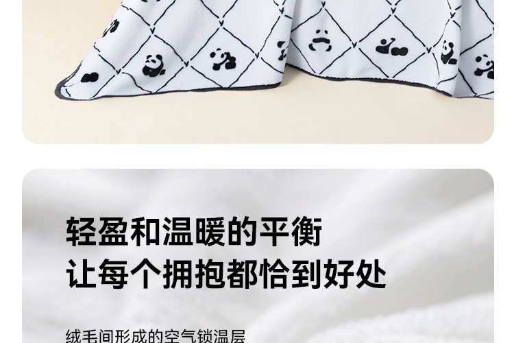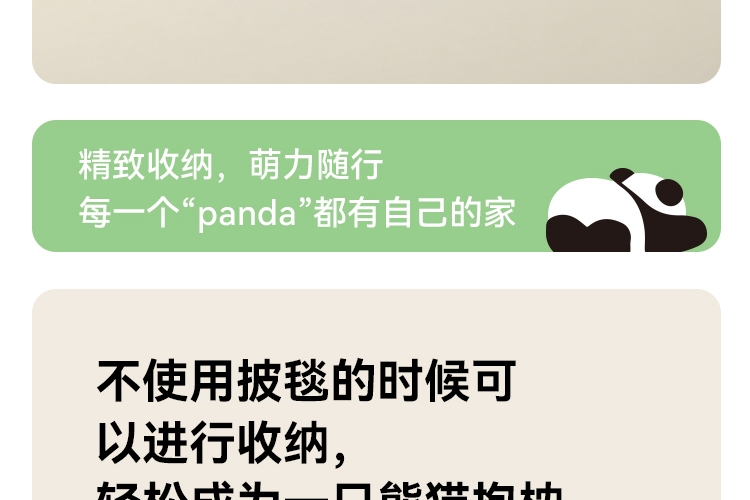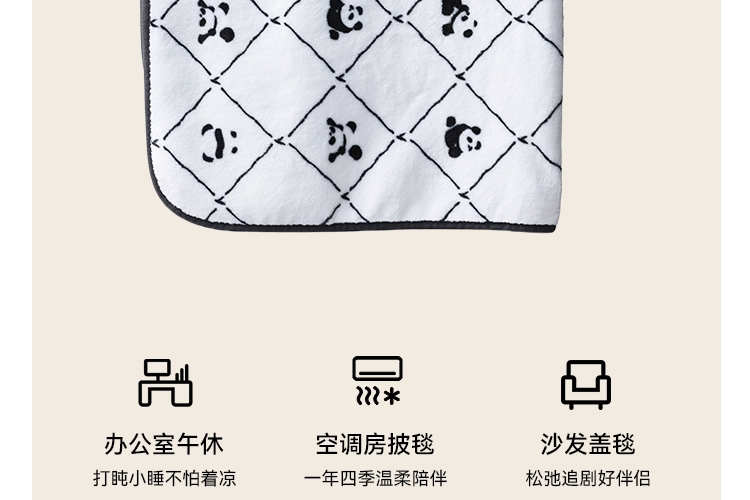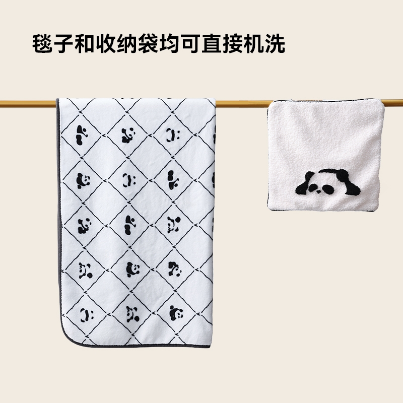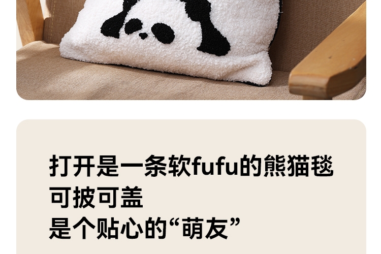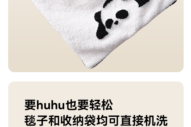 花型灵感来自于全民团宠--“大熊猫”;是贴心的前提 毛绒绒的柔软RUA手感;不使用披毯的时候可以进行收纳 轻松成为一只熊猫抱枕;要huhu也要轻松 毯子和收纳袋均可直接机洗