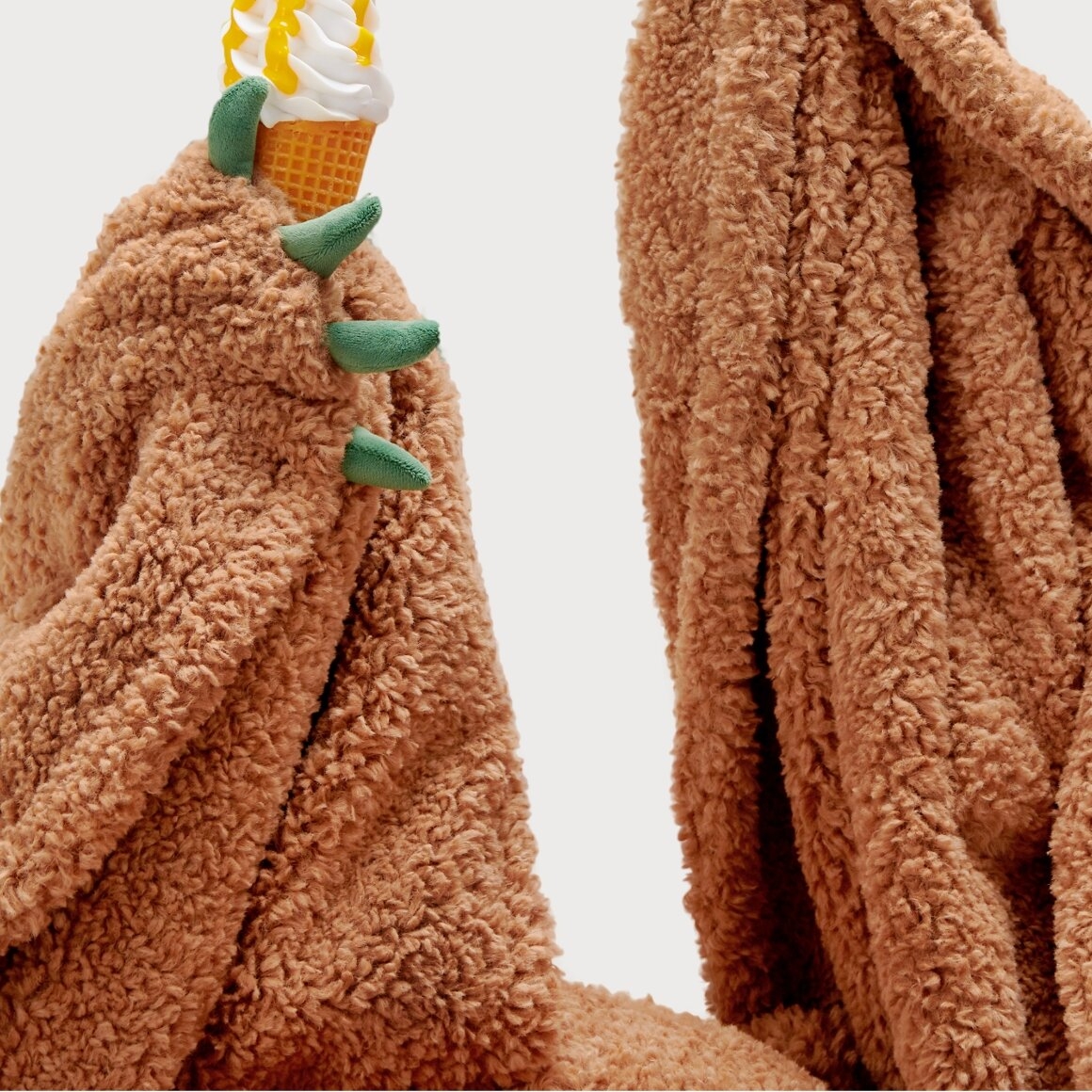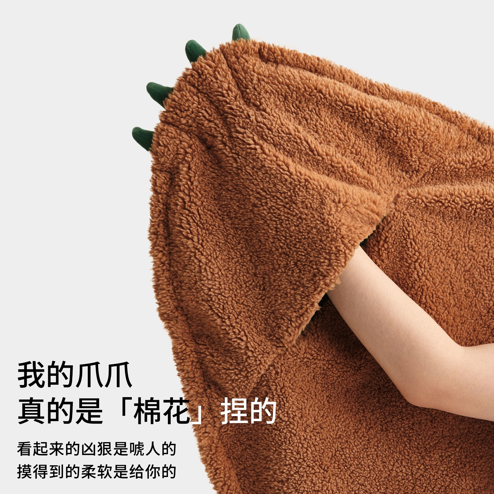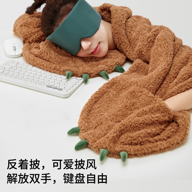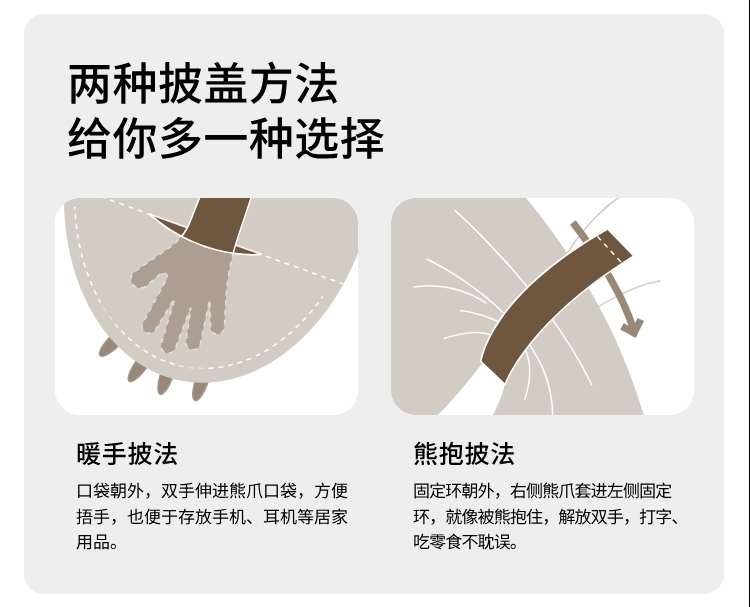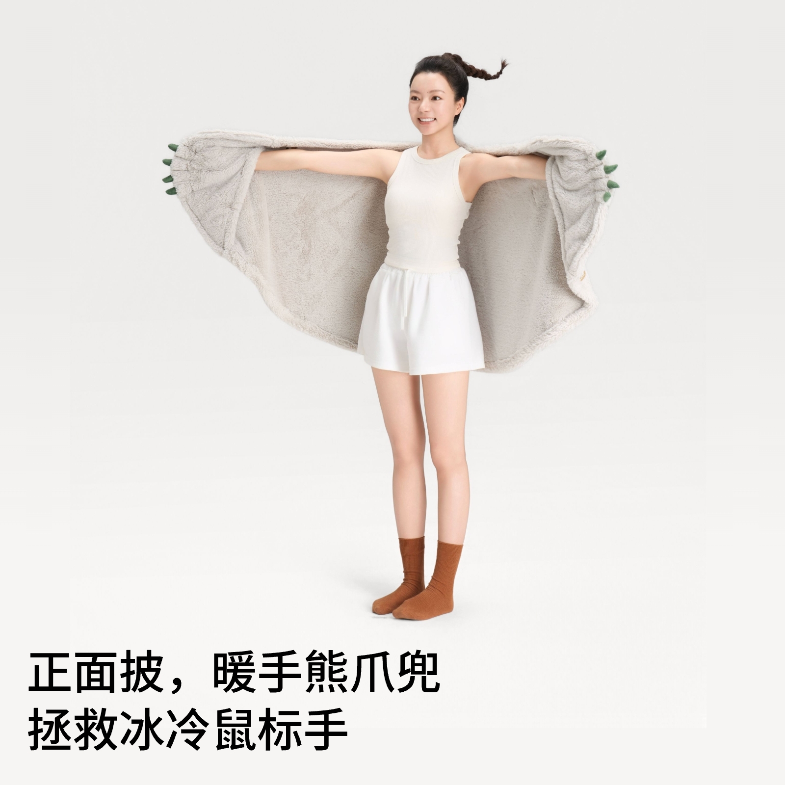 反着披,可爱披风解放双手,键盘自由;正面披,暖手「熊爪兜」拯救冰冷鼠标手;仿兔毛材质纤度 0.8-1.2dtex,细腻触感