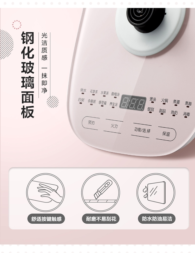 微电脑控制;高硼硅玻璃;9.5小时预约