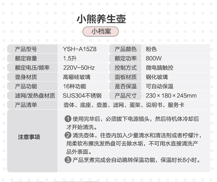 小熊 养生壶煮茶器煮茶壶电水壶烧水壶YSH-A15Z8
