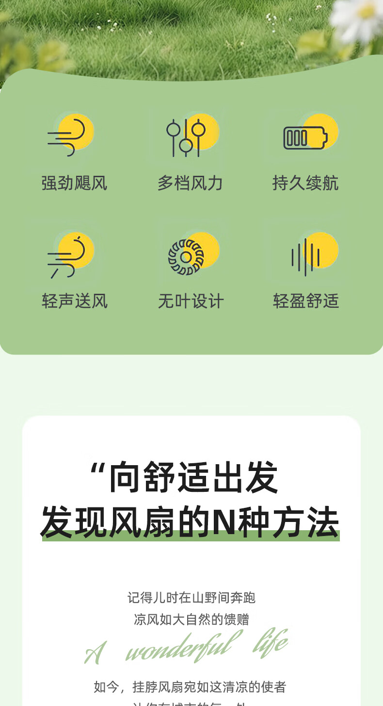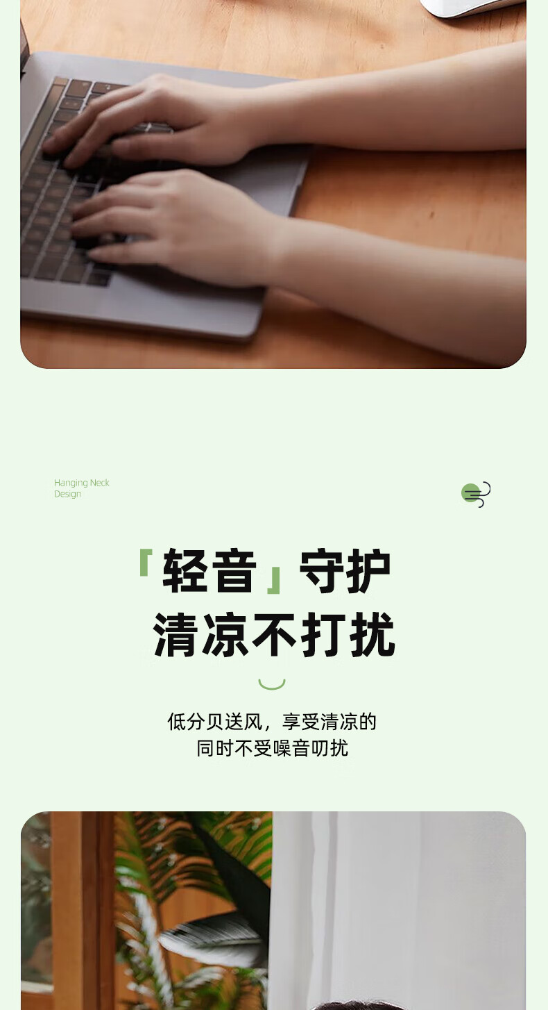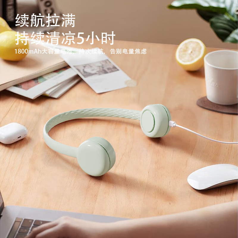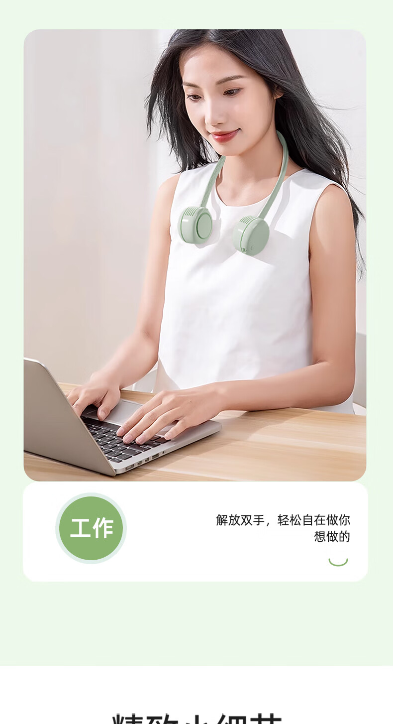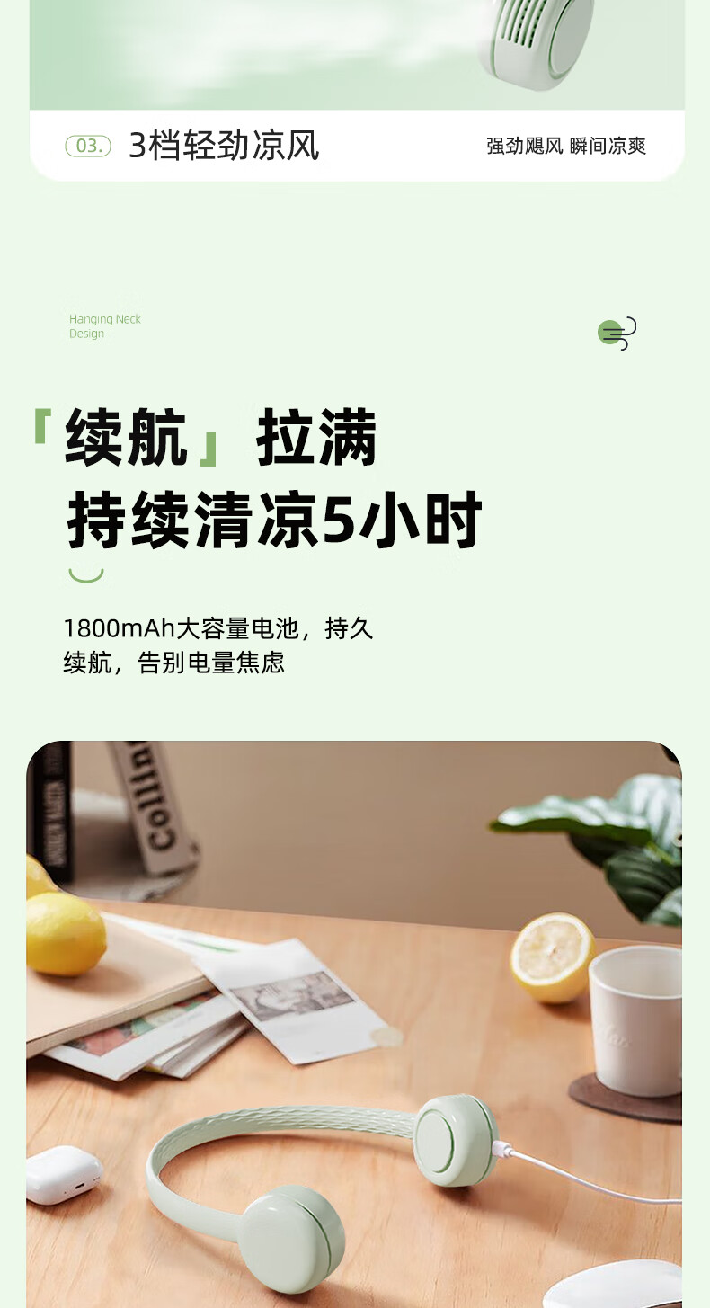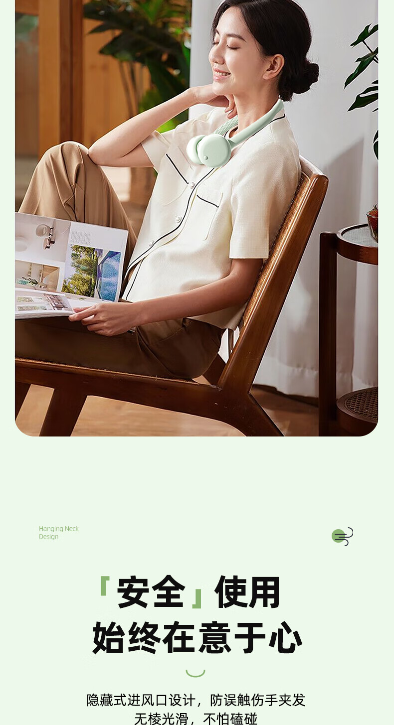 柔软硅胶,体积轻、无重力佩戴三档风力;风口设计(安全不夹发)无线持久续航;无刷电机双涡轮风道设计