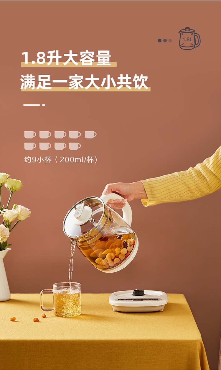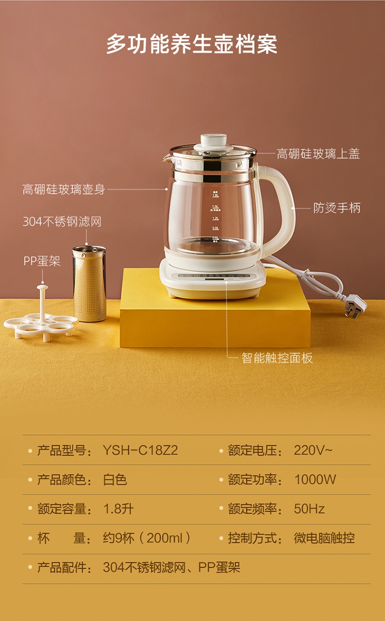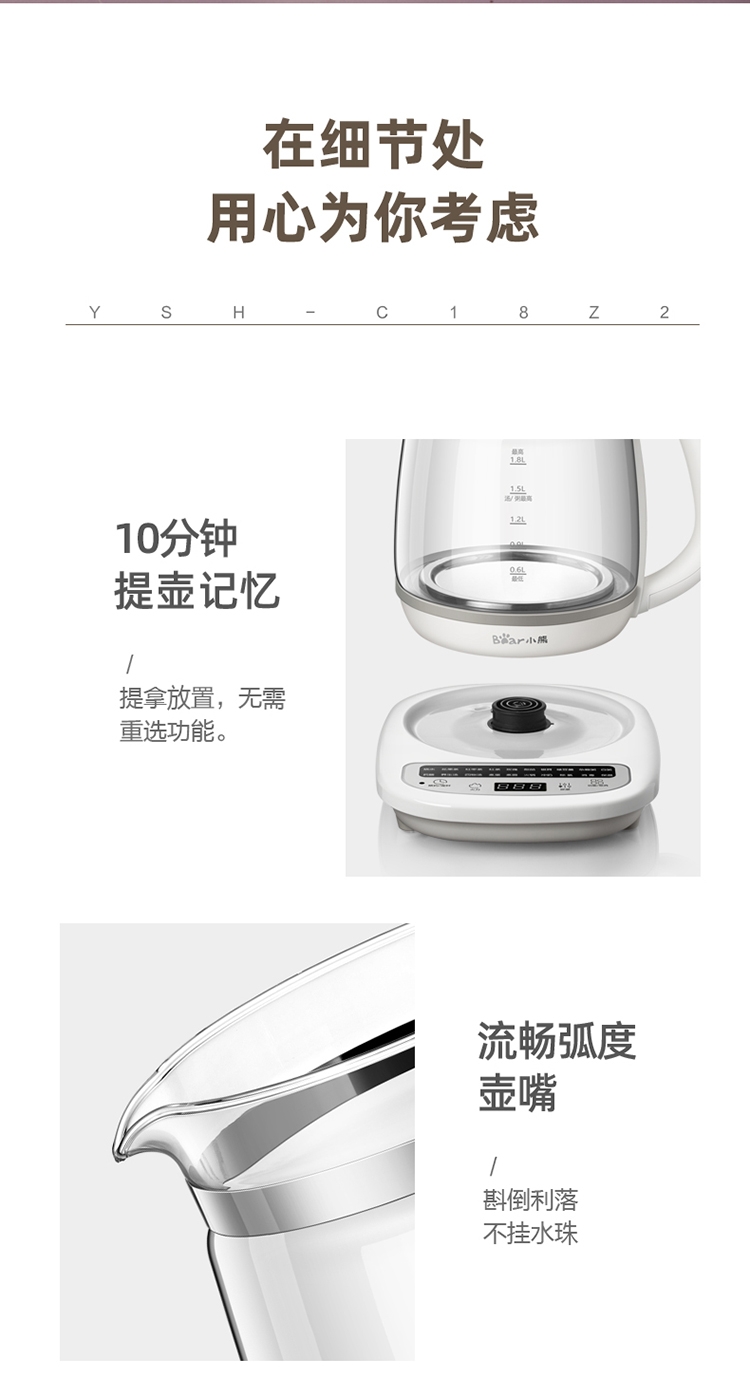 小熊 家用养生壶高硼硅玻璃烧水壶YSH-C18Z2