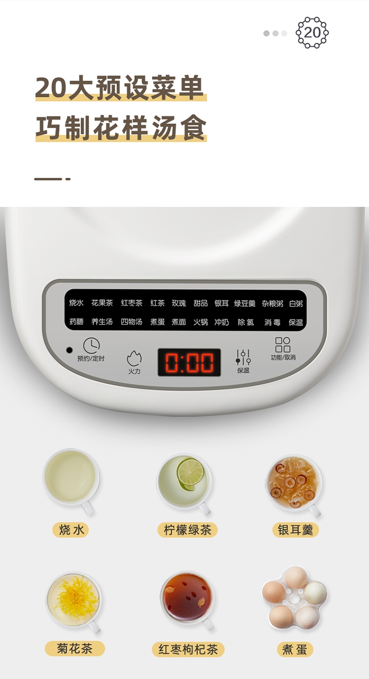 20大预设菜单;1.8L大容量;24小时智能预约