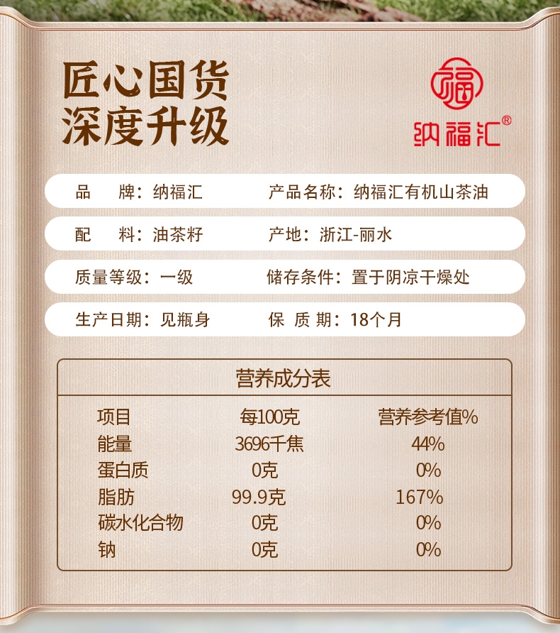好产地—浙江丽水;好籽料—精选油茶籽;好工艺—物理压榨