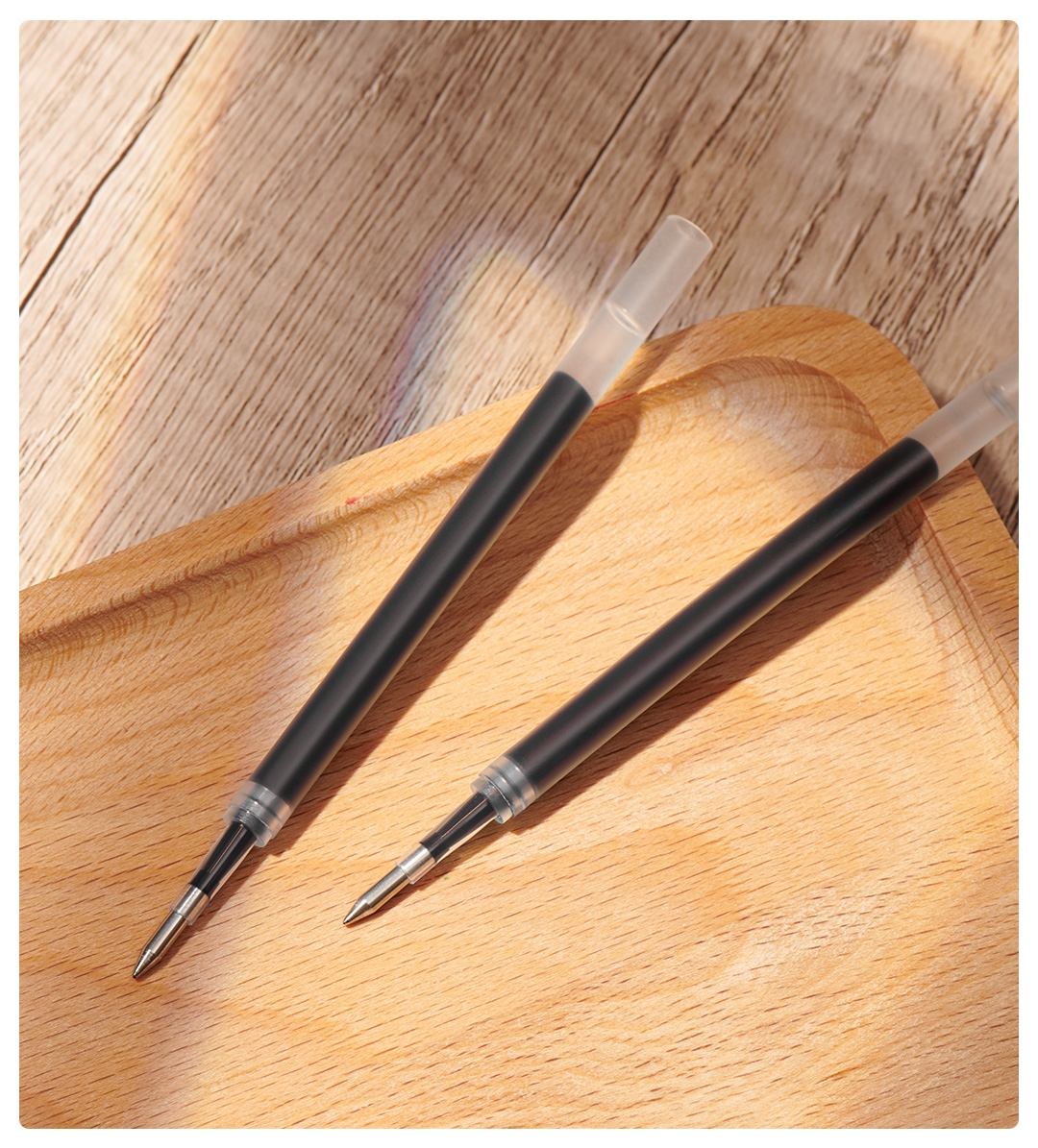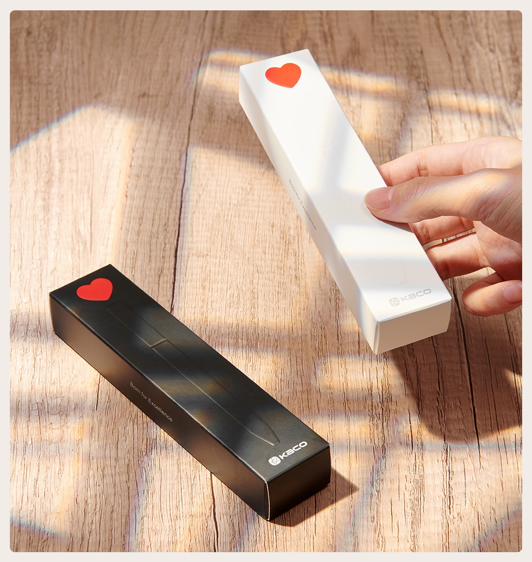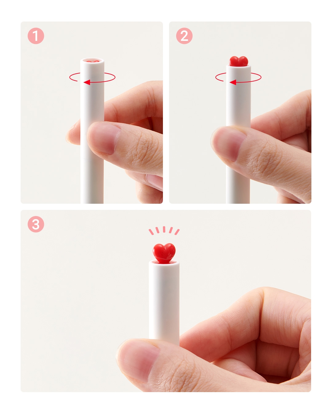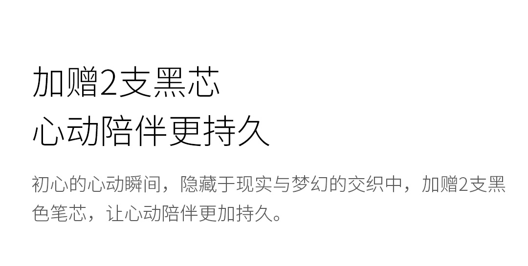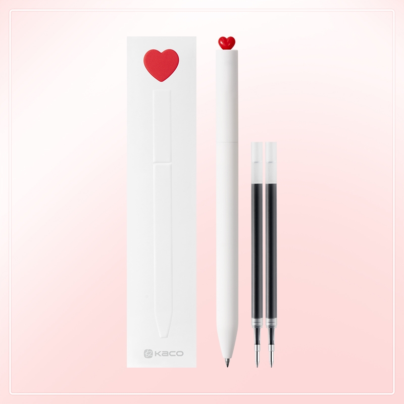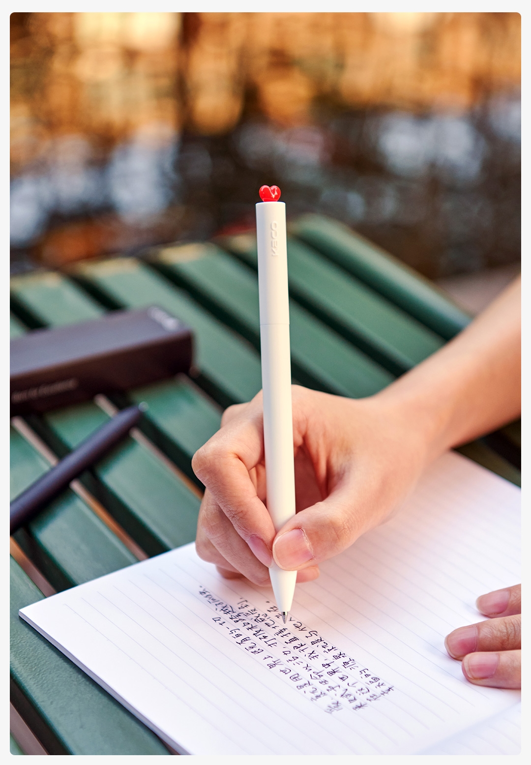 原创心动设计,旋转出芯时,爱心浮现笔端;采用低重心设计,笔杆前端内置金属配重,重量提升;采用双珠笔头,书写添顺滑,书写长度约为 600 米