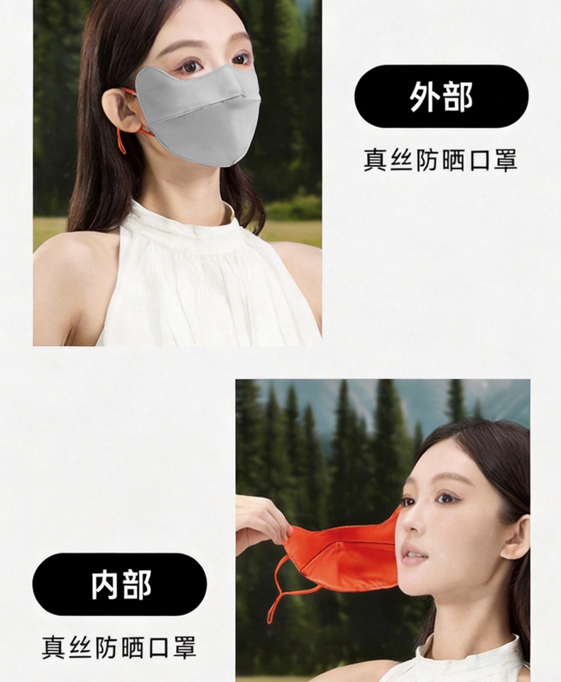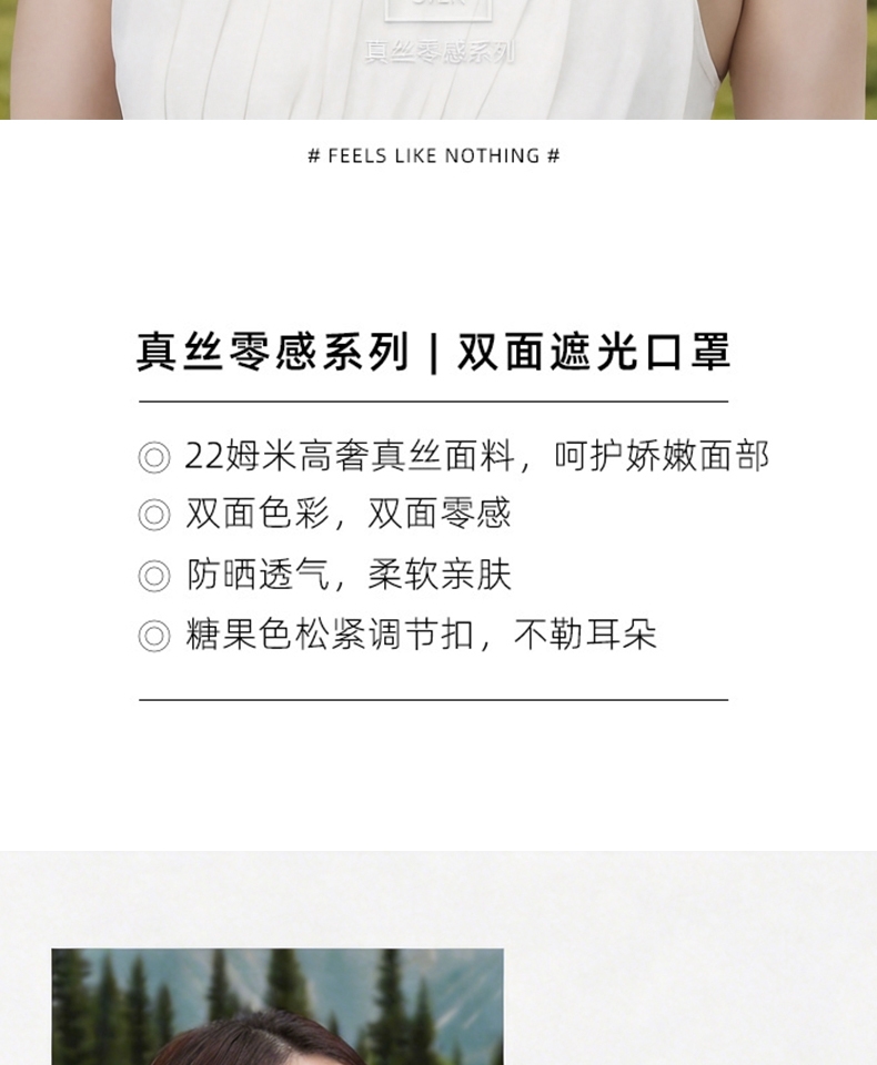 22姆米高奢真丝面料,呵护娇嫩面部;双面色彩,双面零感;防晒透气,柔软亲肤糖果色;松紧调节扣,不勒耳朵