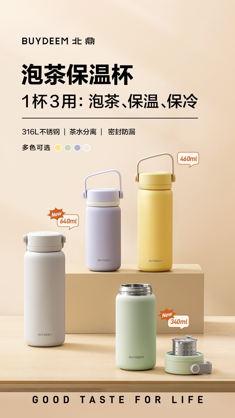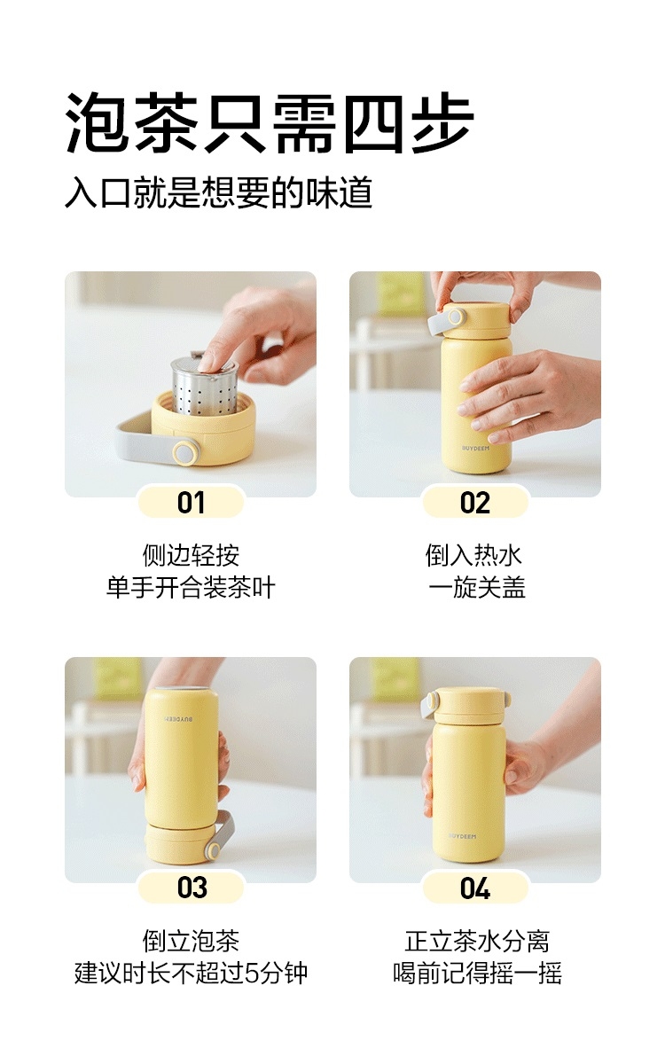 一倒一立茶水分离,喝茶不吐渣;独家弹盖茶篮,容量够大速度够快;保冷保热都很可,热泡冷泡随心泡