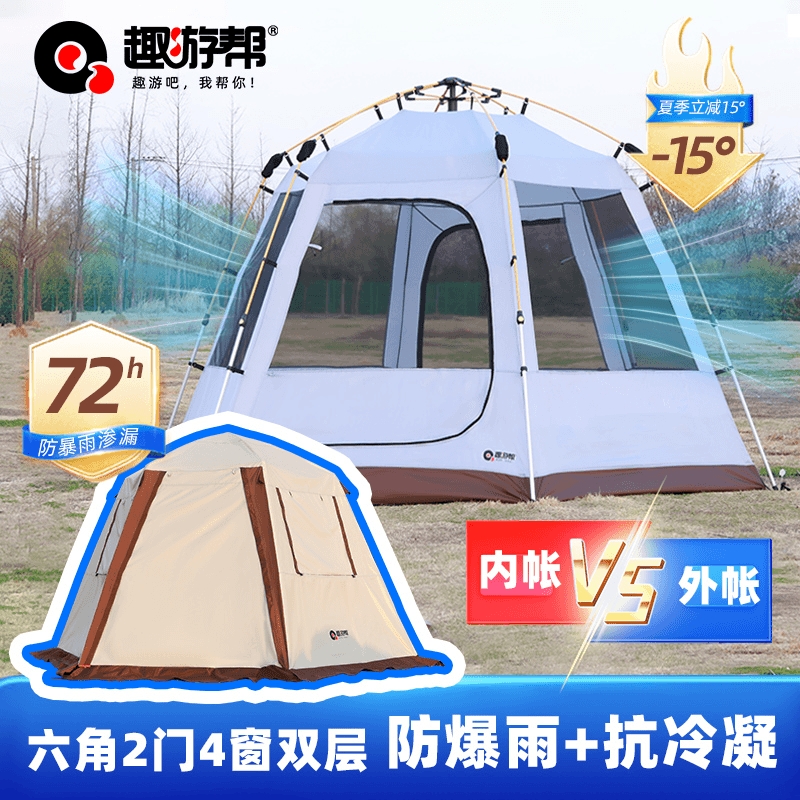 趣游帮 轻奢铝杆双层六角夜营帐Y816PLUS