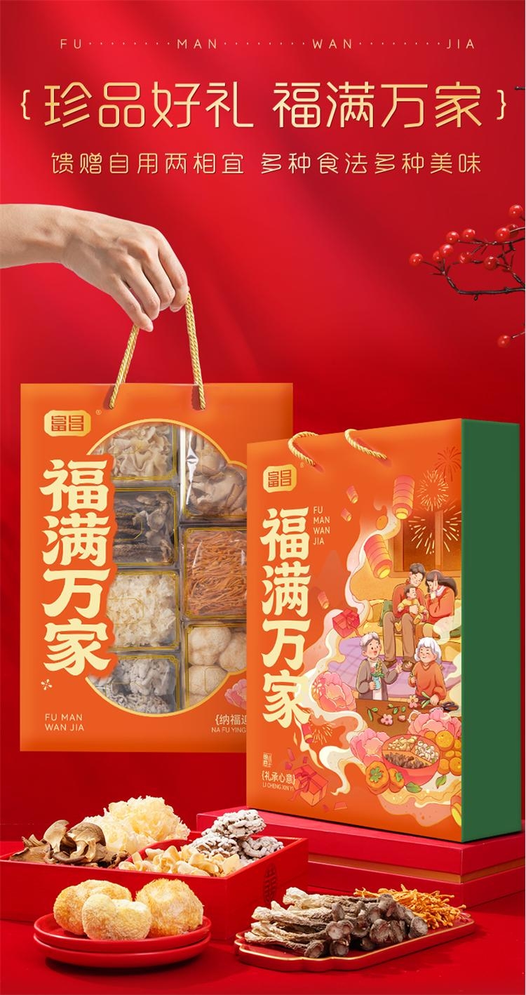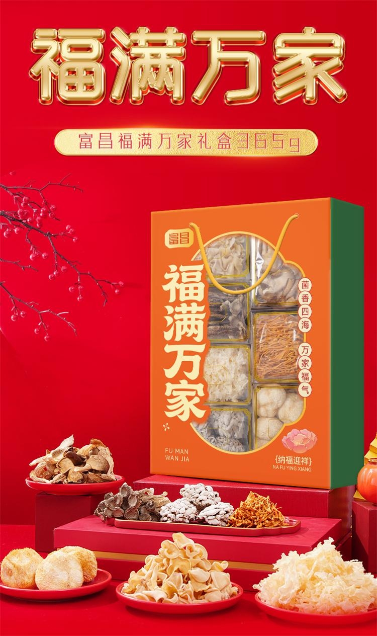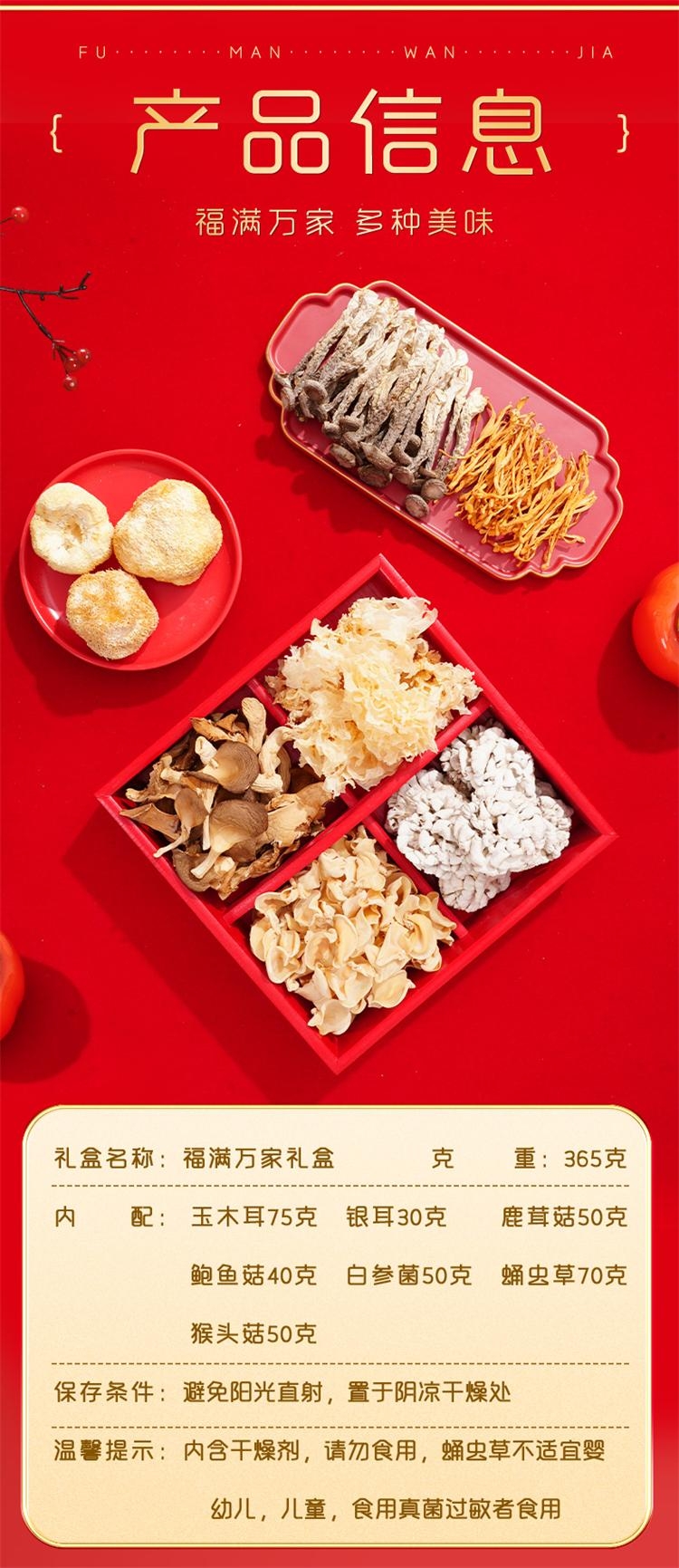 配置清单:玉木耳75g 鹿茸菇50g 鲍鱼菇40g 白参菌50g 蛹虫草70g 猴头菇50g 银耳(片状)30g