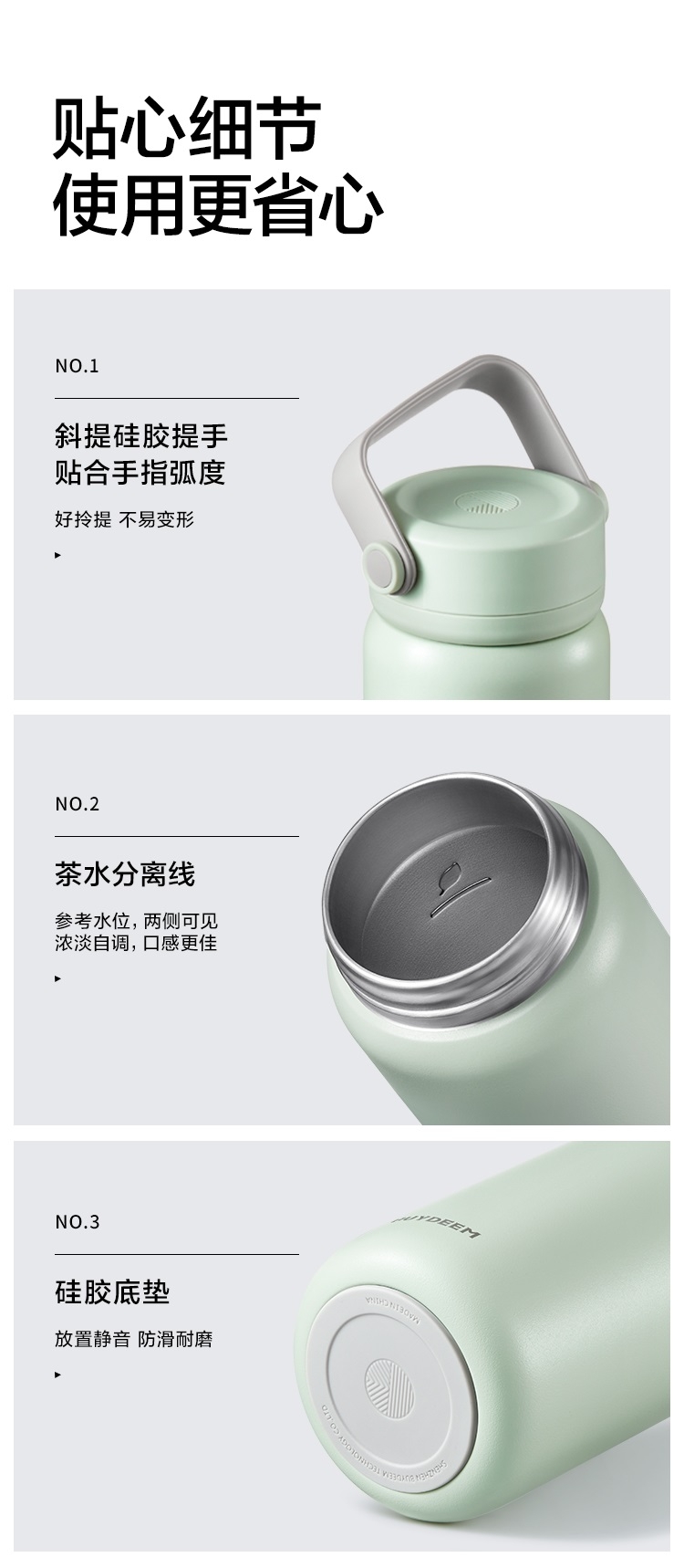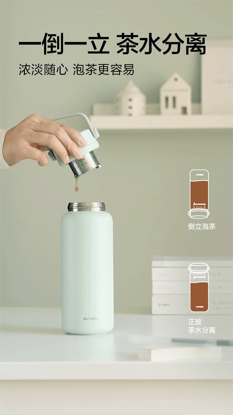 一倒一立茶水分离,喝茶不吐渣;;独家弹盖茶篮,容量够大速度够快;;保冷保热都很可,热泡冷泡随心泡;