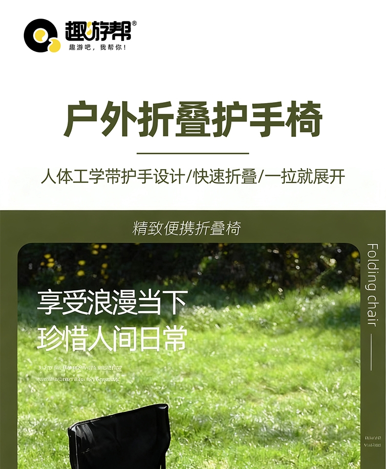 人体工学带护手设计,舒适体验感更好;快速折叠,收纳不占空间;一拉就展开可坐;一合收起带走户外露营,钓鱼休闲;自驾游排队休息,庭院阳台多场景使用