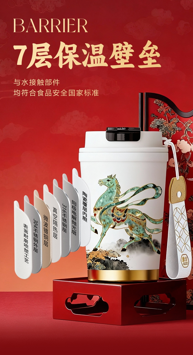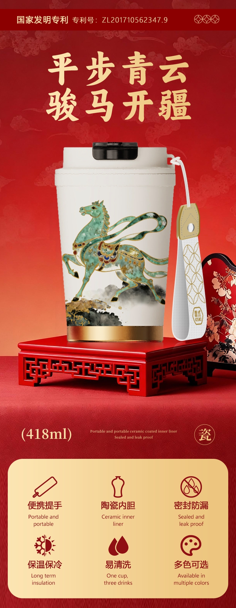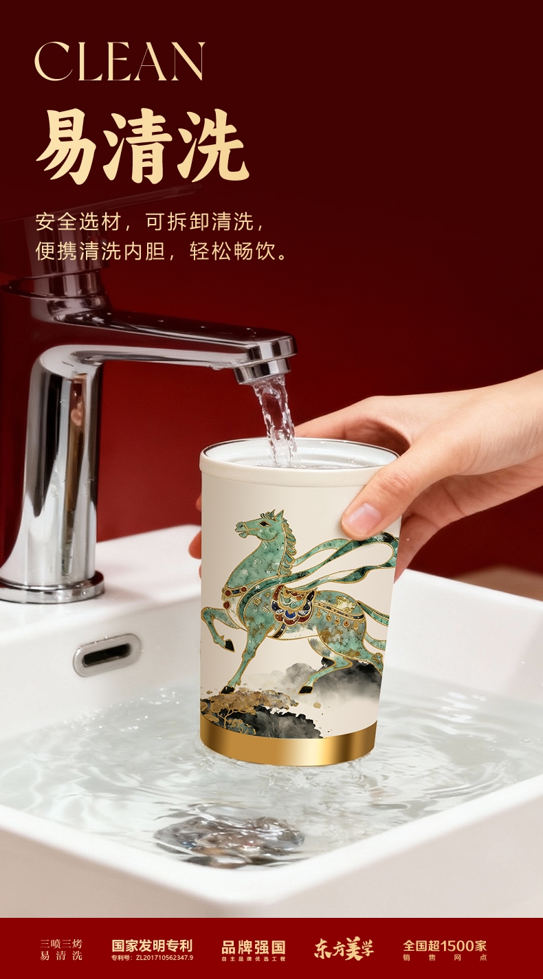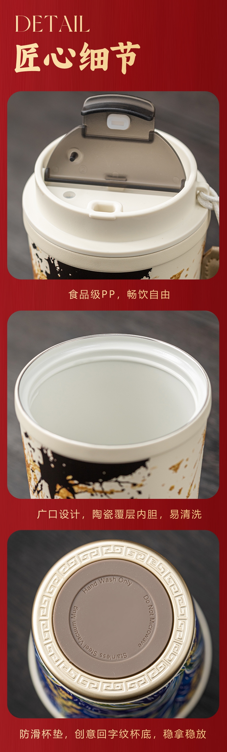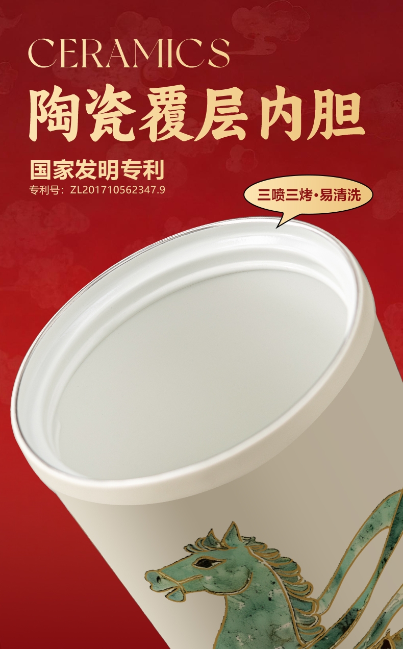 黑科技陶瓷内胆:无金属异味 保温 锁鲜 耐酸碱;瓷内胆,不易留茶垢,方便清洗更省心;使用新型3D喷墨印刷技术,展现凹凸立体质感