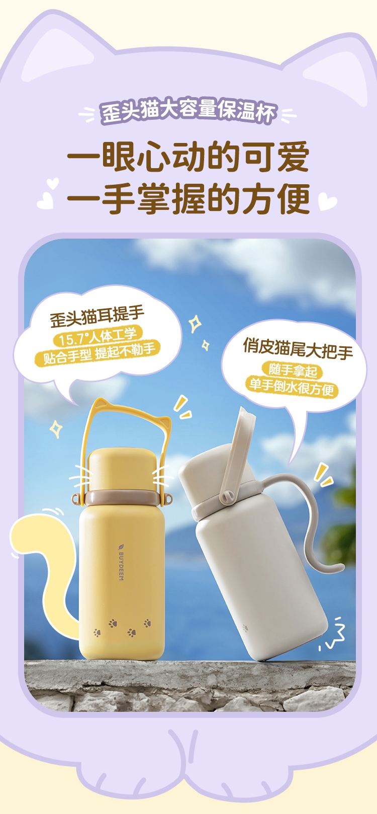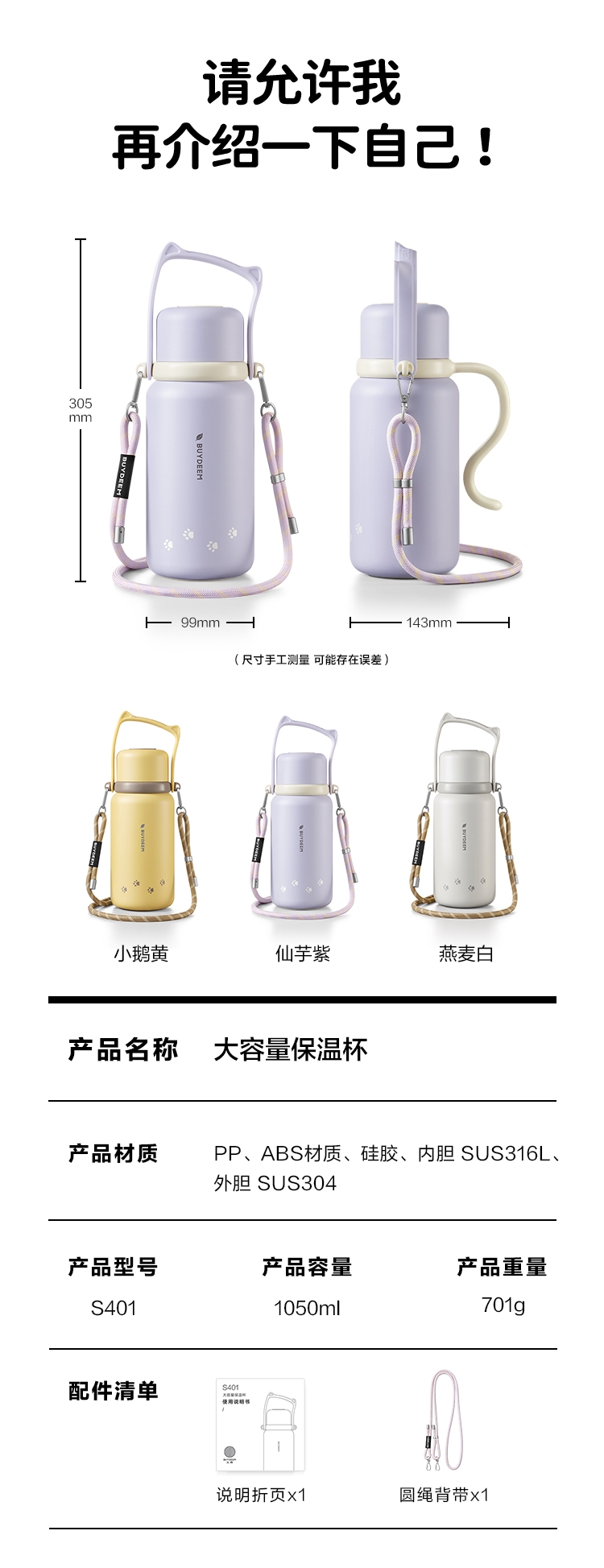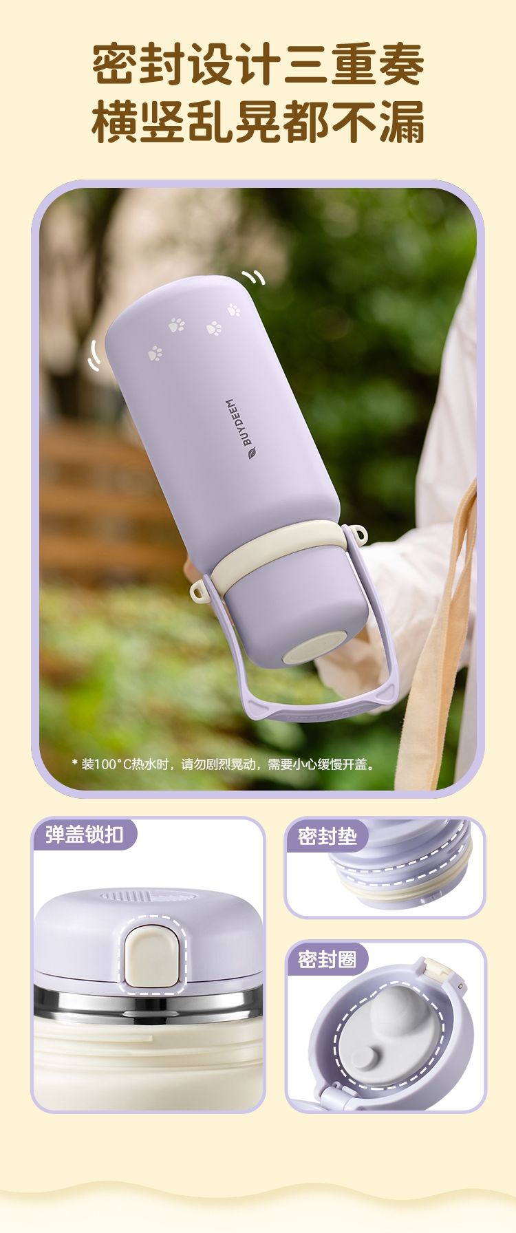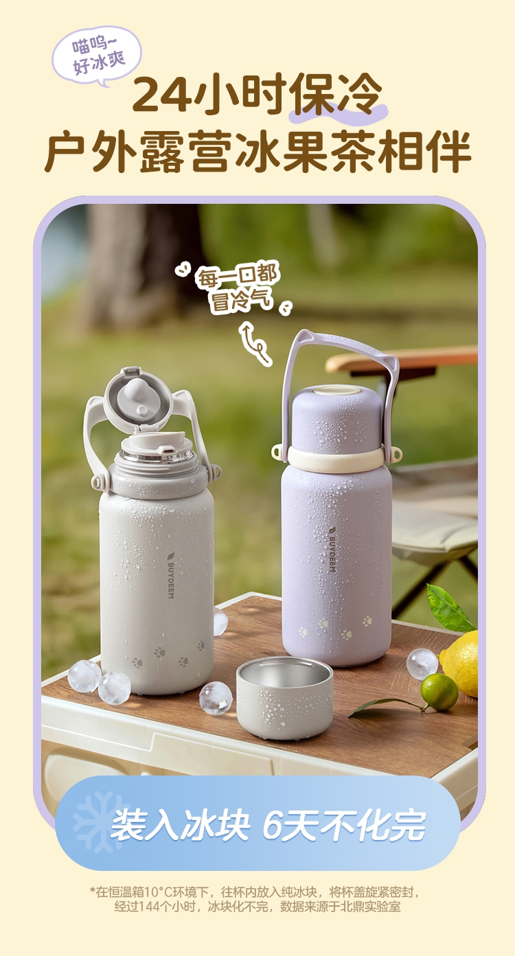 一杯两用,是水杯也是水壶,一倒一立,可闷茶,可泡茶;可拎可背,背带可调节;;三道锁扣,不漏水防误触安心外带;