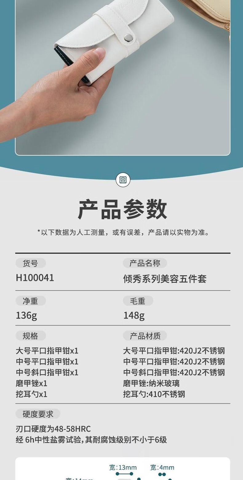 手柄PVC材质,人性化握柄,舒适手感,便携省力;刀口锋利,易裁剪,30Cr13不锈钢,耐磨不生锈;锋利耐用,优质不锈钢,专业修甲,撞色皮包,方便携带