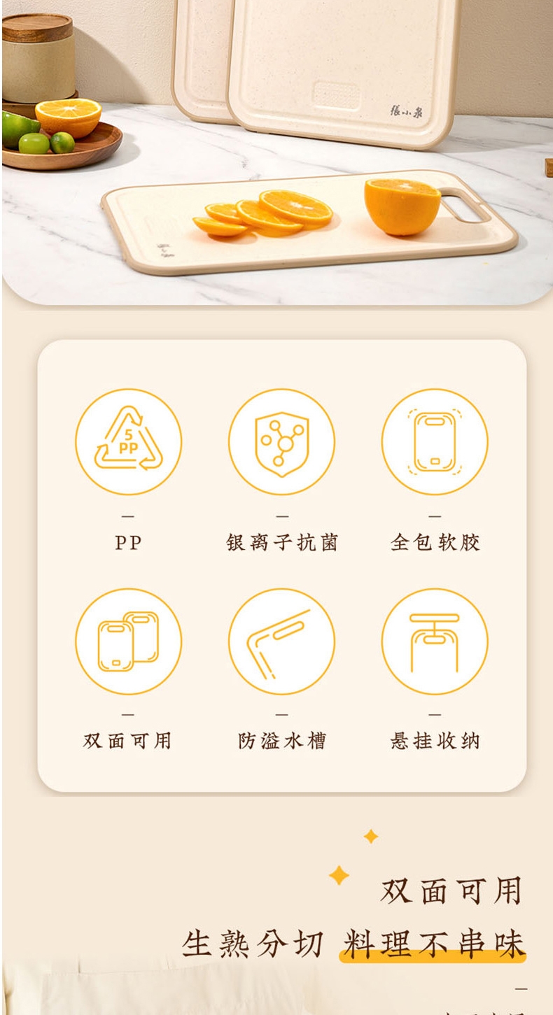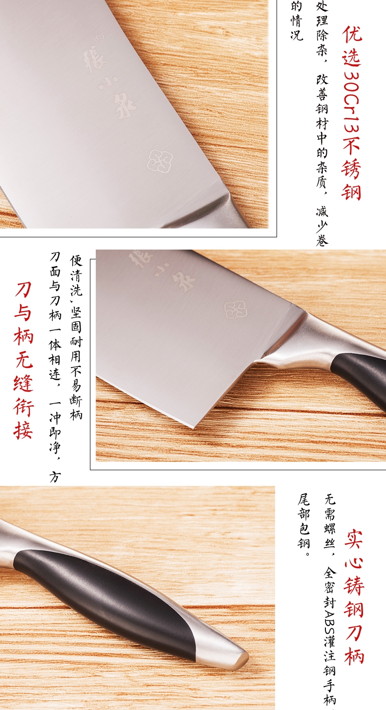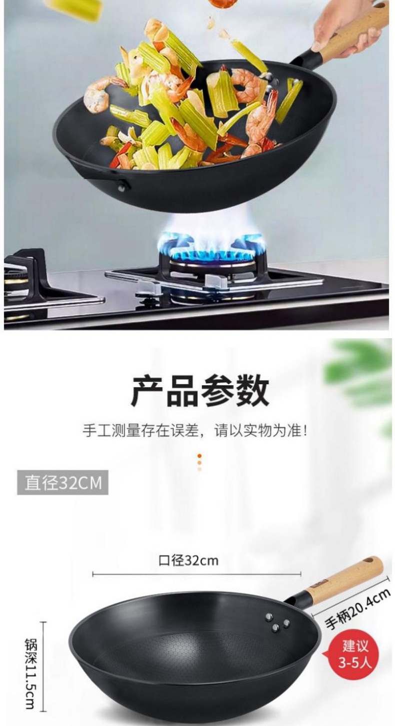 耐用防锈铁锅,品质不锈钢铲;银离子抗菌砧板,双面可用,生熟分切,料理不串味;优选30Cr13不锈钢套刀,通风木质底座