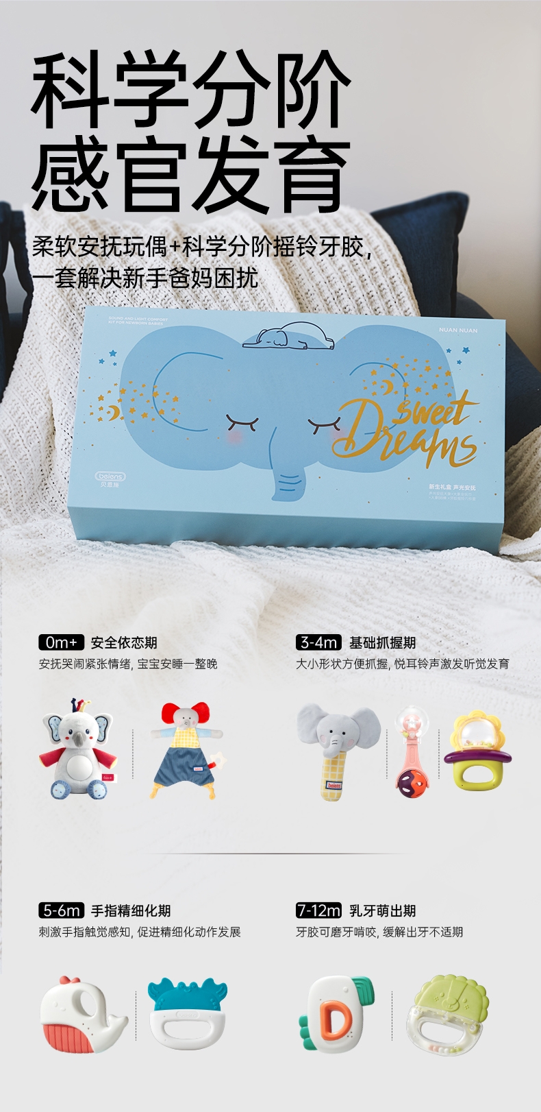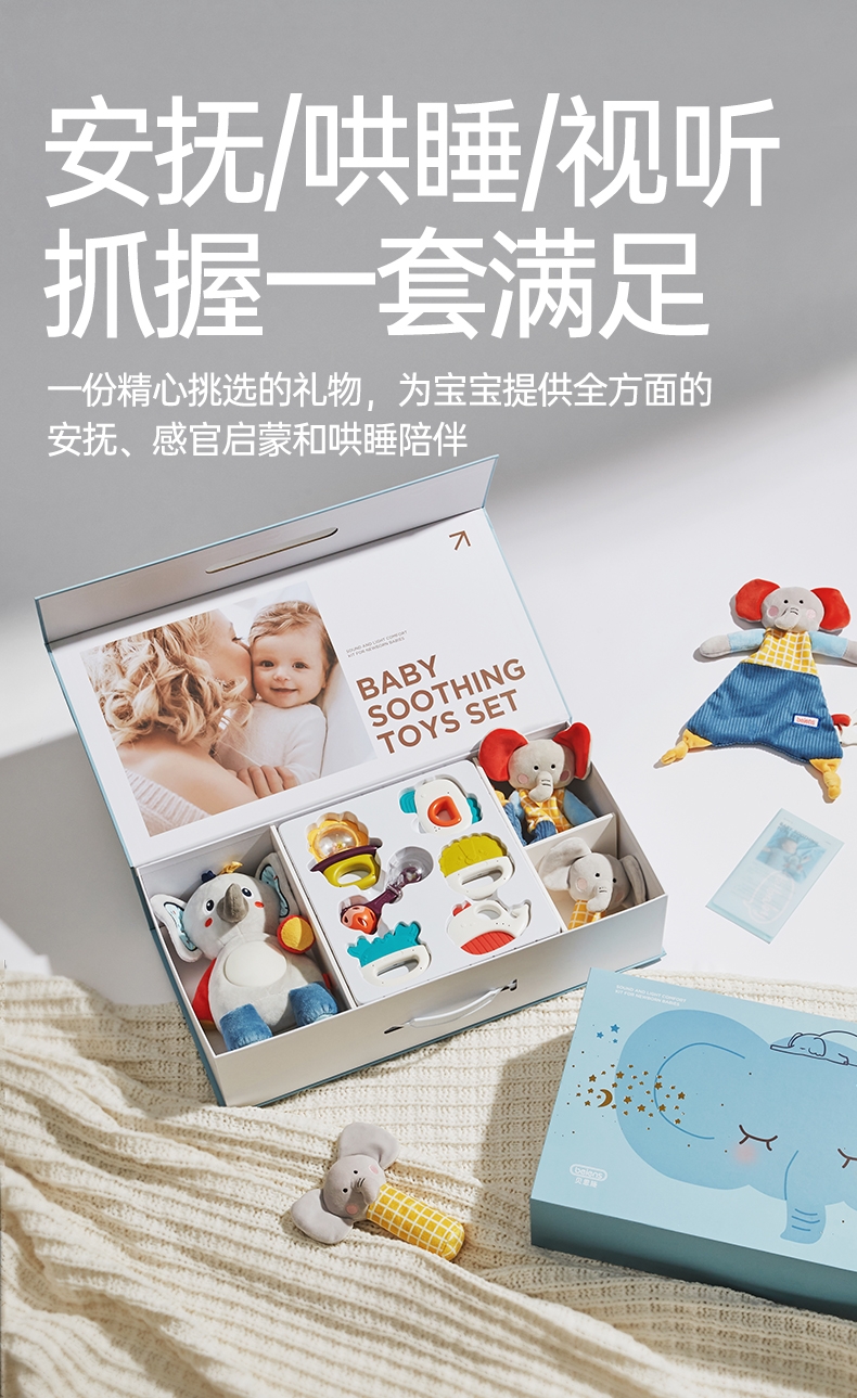 宝贝新生礼,安抚哄睡;视听抓握一套满足;全面满足宝宝需求,科学分阶,促进宝宝感官发育