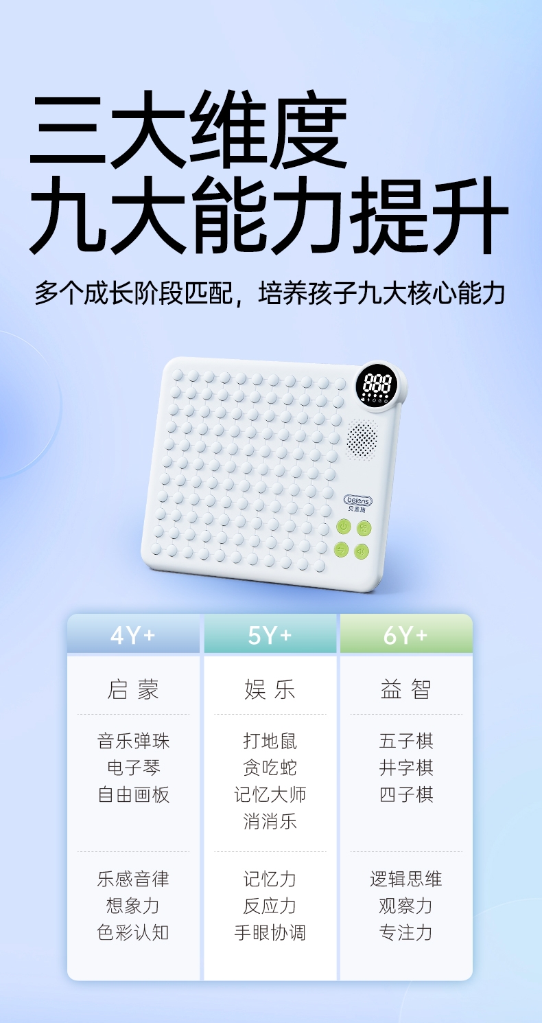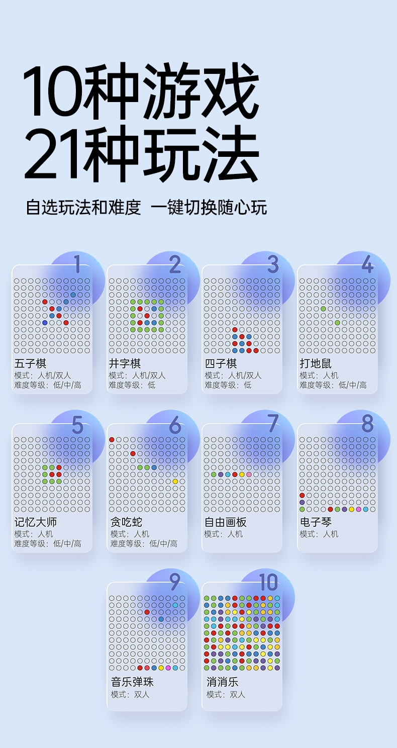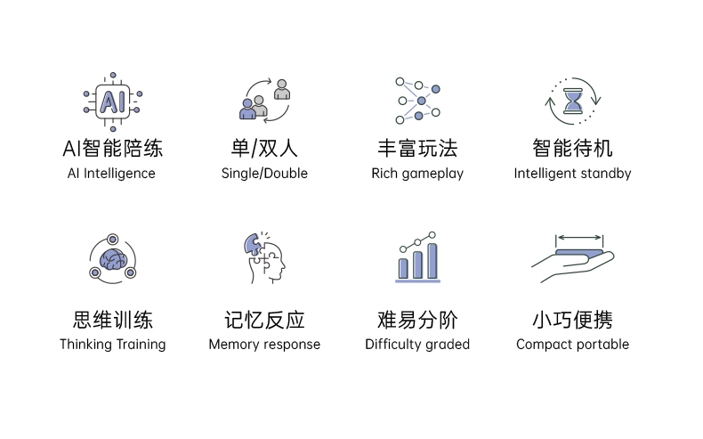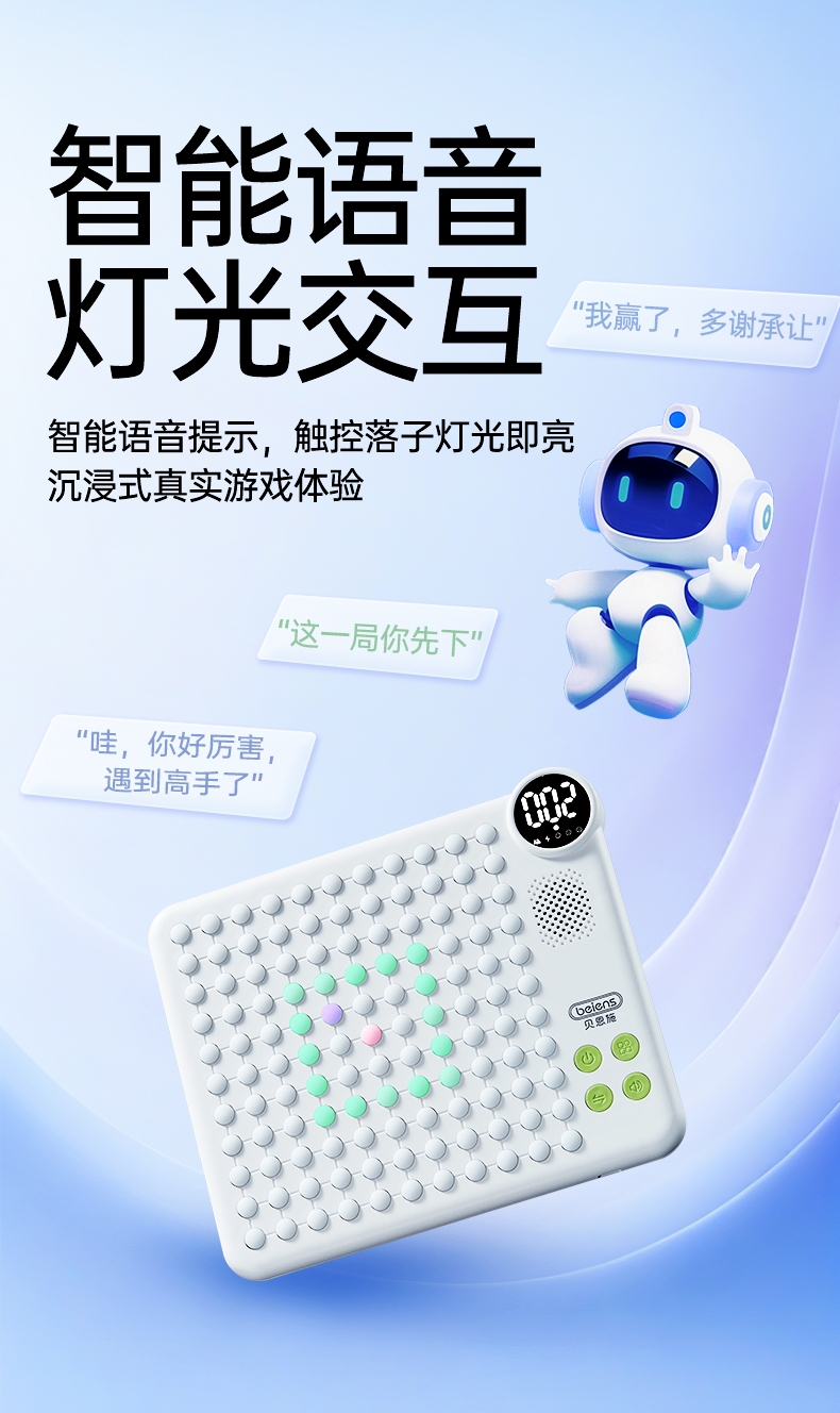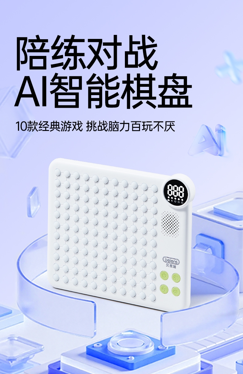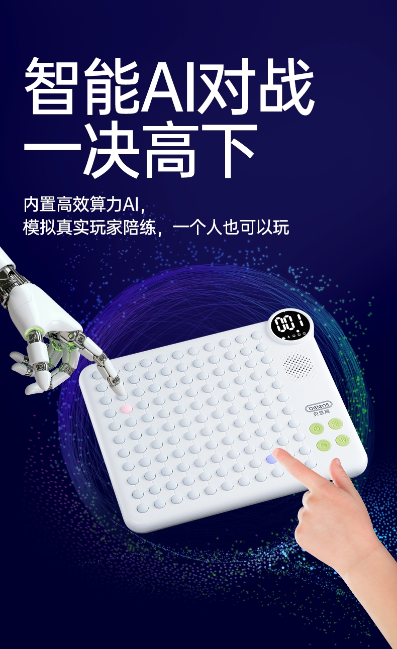 AI智能棋盘,内置10款经典游戏;21种玩法,3大挑战模式;挑战脑力百玩不厌,三大维度提升孩子思维能力